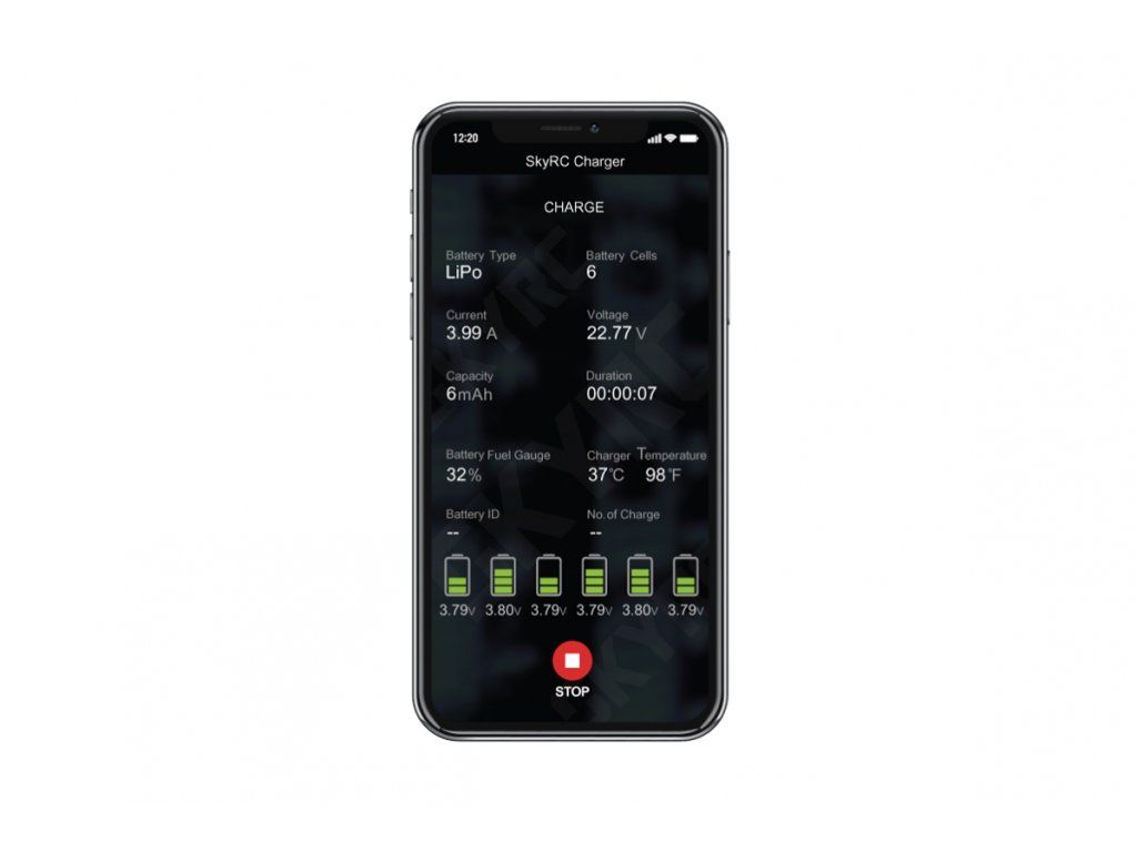 - nastavitelné koncové napětí pro nabíjení a vybíjení pro lithiové akumulátory (umožňuje šetrnější nabíjení, které mají rádi letci, nebo naopak brutální přebíjení, kterému holdují „autíčkáři“) – s aplikací SkyCharger