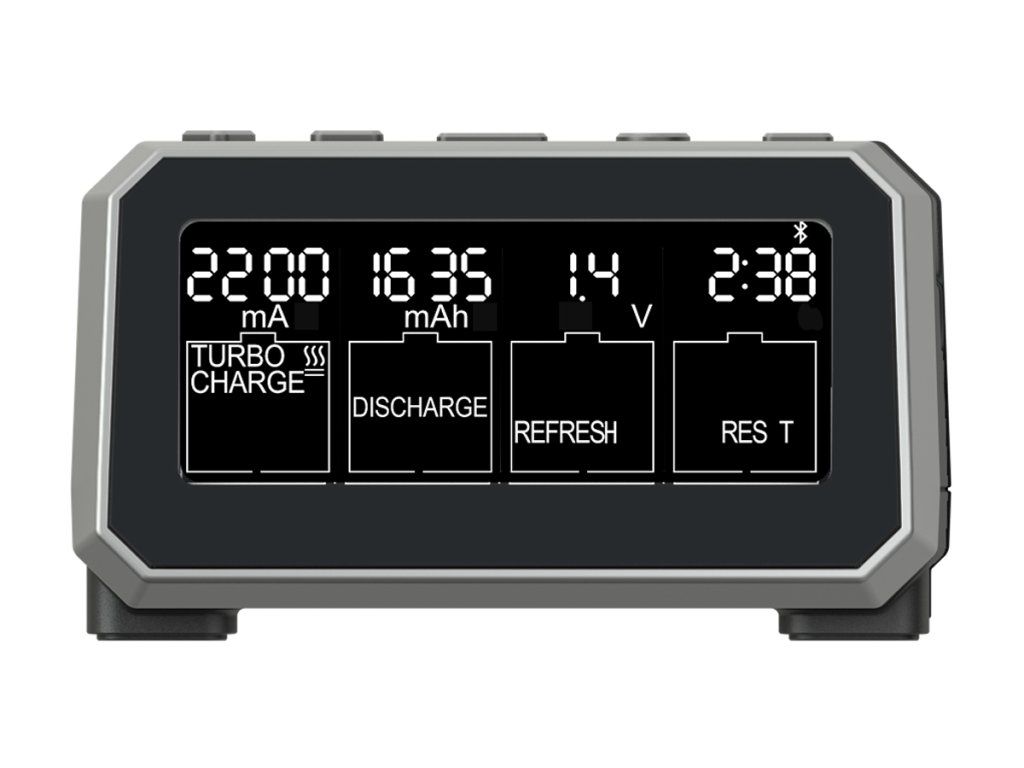 - LCD displej s jednoduchým a přehledným menu a zobrazováním parametrů během nabíjení.