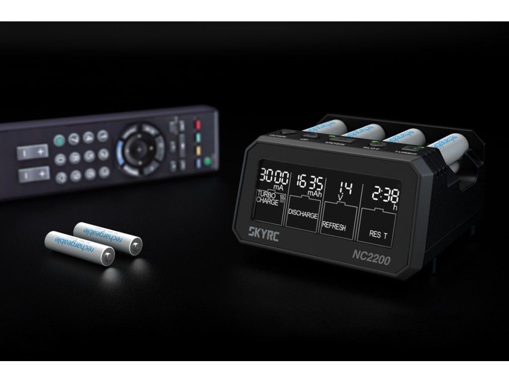 NC 2200 umožňuje současně – a přitom nezávisle - nabíjet nebo vybíjet až čtyři různé tužkové nebo mikrotužkové akumulátory. Parametry probíhajícího procesu (nabíjecí/vybíjecí proud, nabitý/vybitý náboj, napětí akumulátoru, vnitřní odpor, uplynulý čas) jsou průběžně zobrazovány pro všechny kanály na LCD displeji. NC2200 umožňuje také synchronní provoz kanálů – stačí vložit 2-4 akumulátory stejného druhu, zadat parametry nabíjení nebo jiného provozního režimu pro první kanál a poté jedním dlouhým stiskem tlačítka odstartovat stejný proces i pro všechny ostatní „obsazené“ kanály.