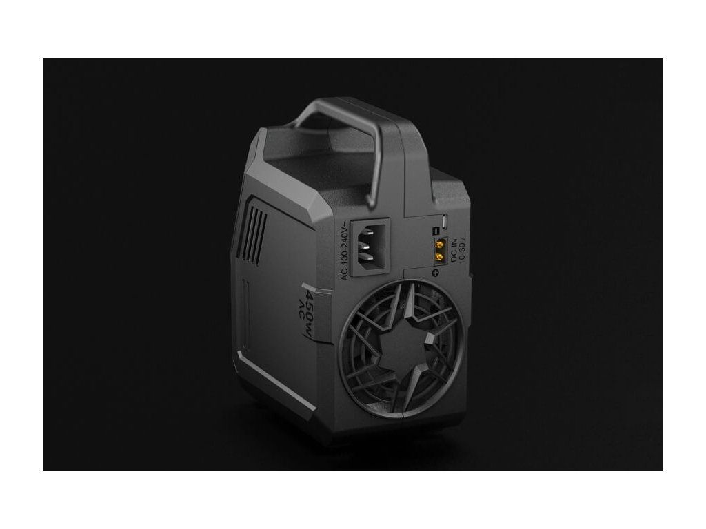 - Max. celkový výkon pro nabíjení 450 W při napájení ze sítě nebo celkem max. 1000 W při napájení ze stejnosměrného zdroje