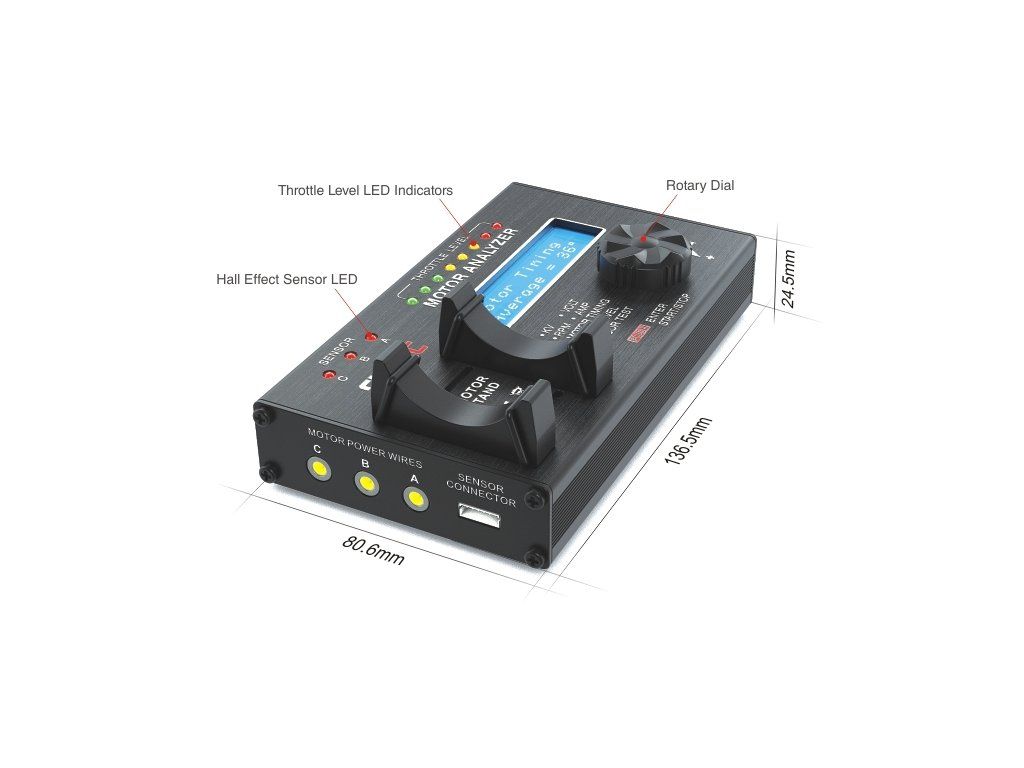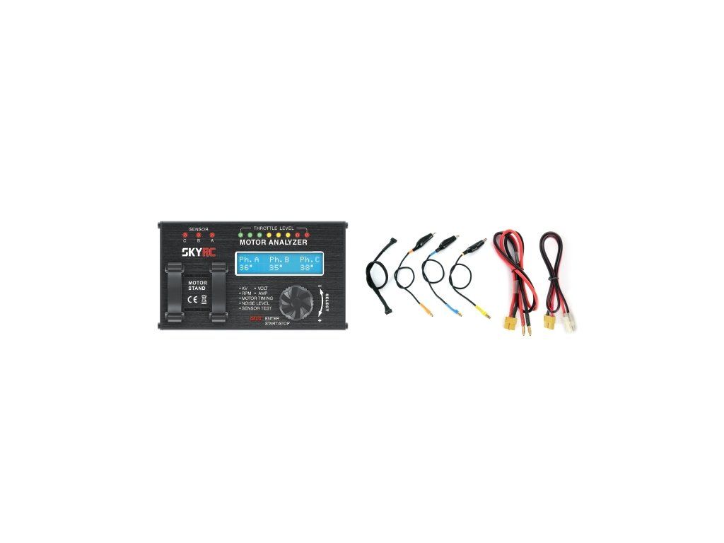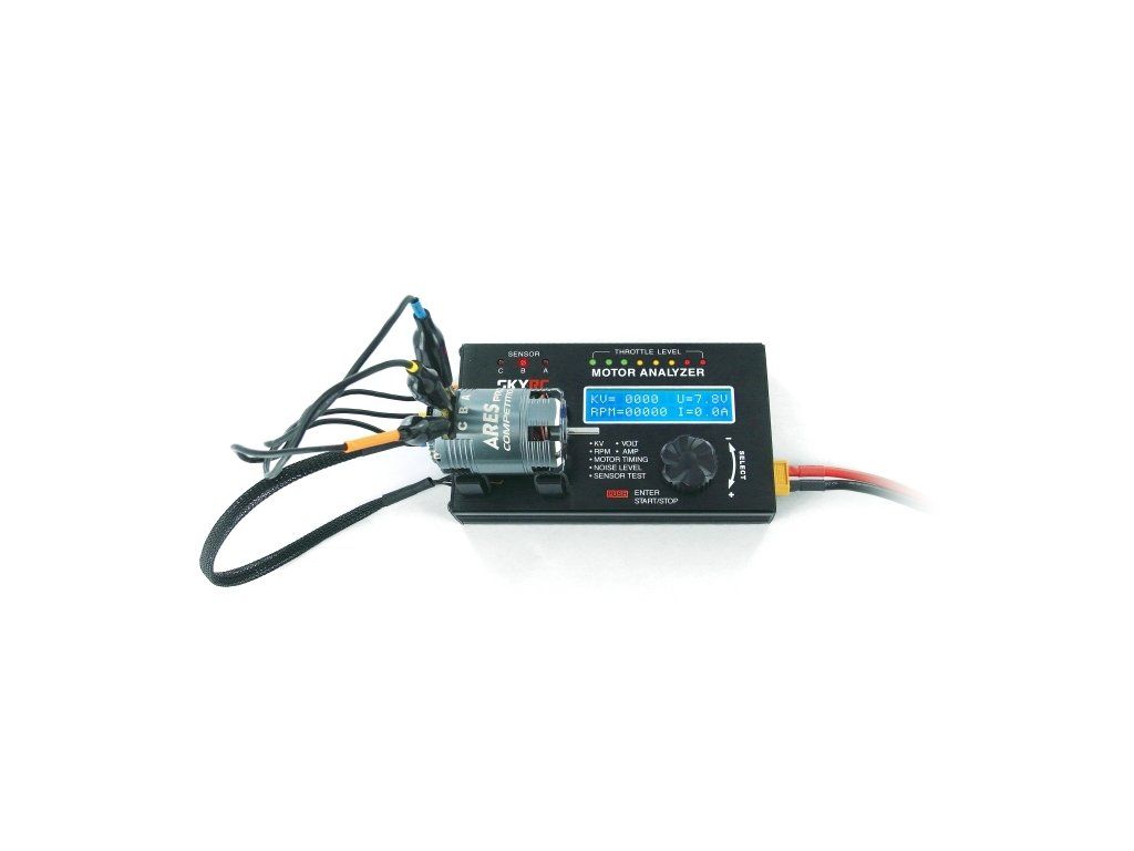 Tester střídavých elektromotorů SKY RC Motor Analyzer BMA-01 je elektronický přístroj speciálně zkonstruovaný pro měření parametrů, jako je počet otáček na volt („KV“), otáčky motoru, měření proudového odběru, měření časování (průměrné hodnoty i jednotlivých fází), měření hlučnosti a kontrola funkcí Hallových senzorů střídavých motorů. Naměřené hodnoty pro střídavé motory se snímači i bez snímačů jsou v reálném čase zobrazovány na dvouřádkovém LCD displeji.