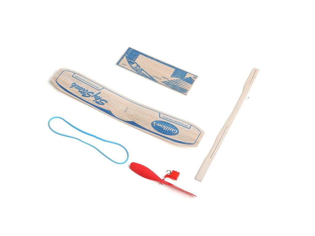 Stavebnice obsahuje: trup, vyseknuté a potištěné křídlo již vytvarované do vzepětí, předseknuté ocasní plochy a kabinu, vrtuli s hlavicí a gumový svazek (guma 3x1).