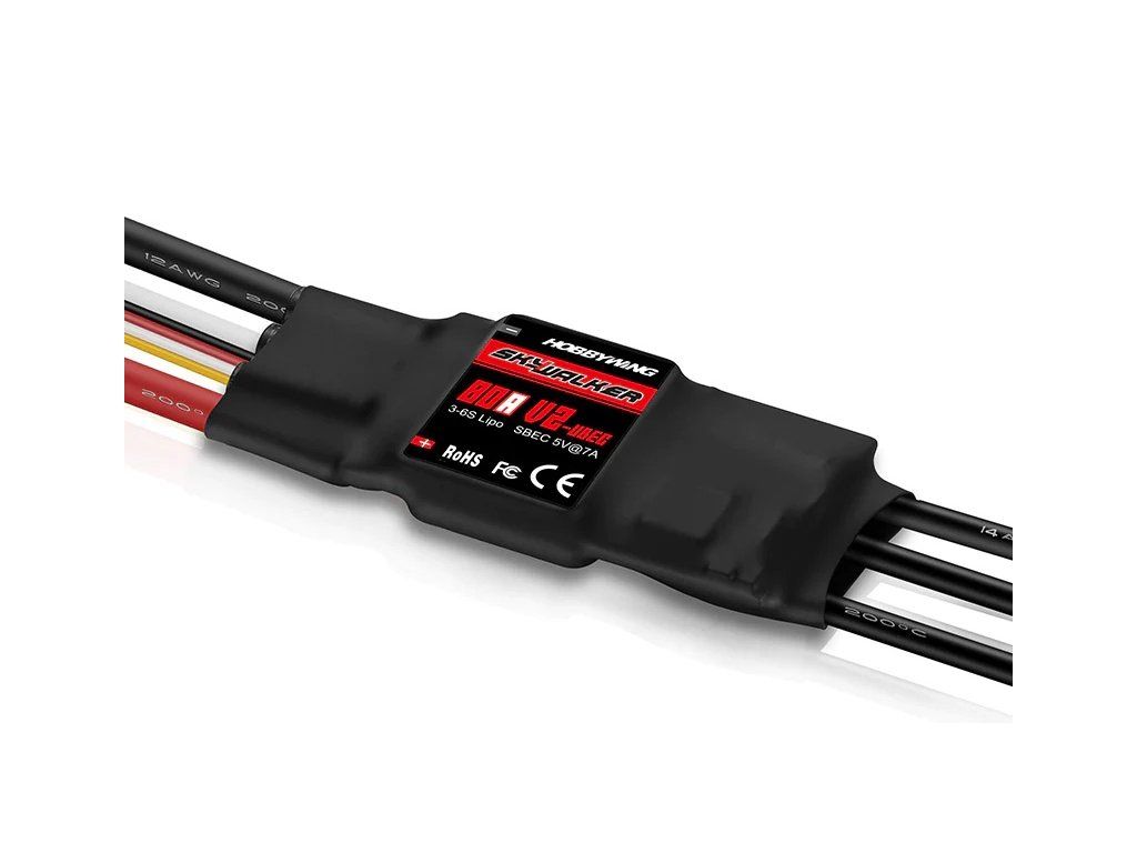 - Vhodný pro valnou většinu leteckých střídavých motorů s napájením z akumulátorů 3-6S LiPo.
