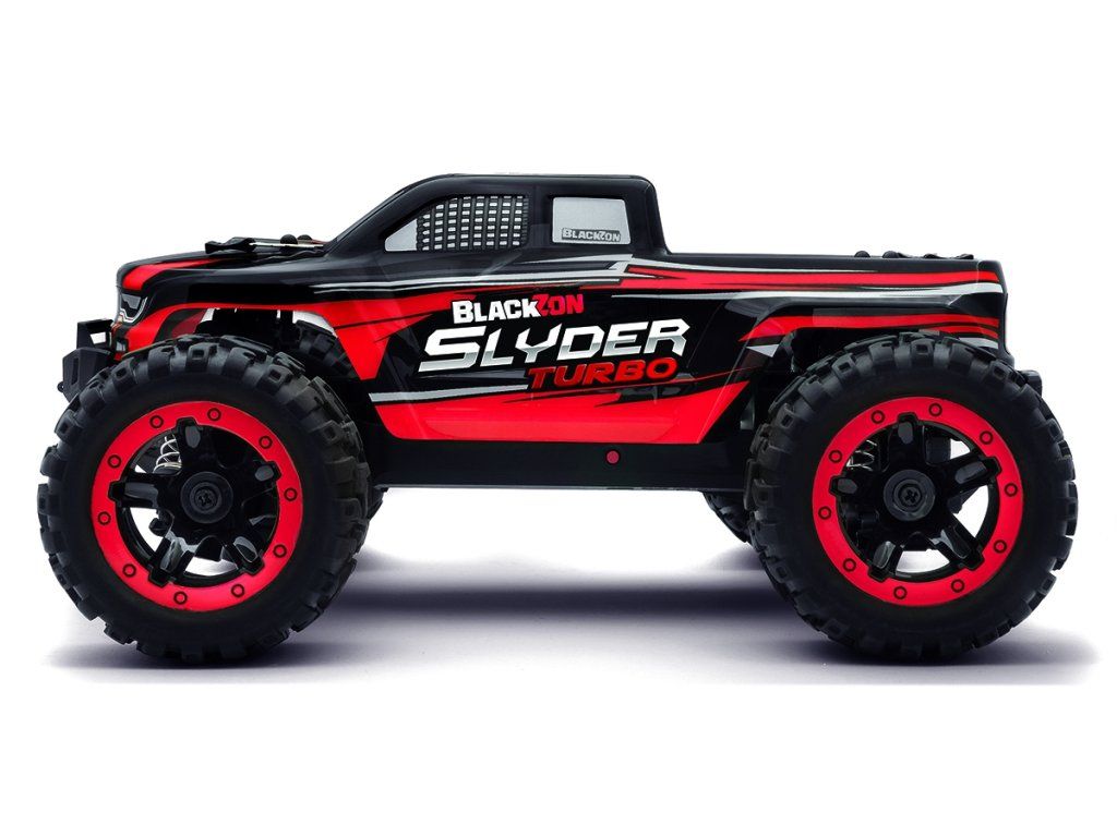 Šestnáctinový RC monster truck je sice malý rozměry, ale velký možnostmi. Tento vůz s pohonem všech 4 kol je připraven čelit skokům a nárazům, a nezaostává ani při nejrůznější akrobacii. Díky 4x4 pohonu, rovnoběžníkovému zavěšení a stavitelným tlumičům zdolá nástrahy každého terénu, a díky krytým převodům a voděodolné elektronice se nezalekne ani kaluží, bláta nebo prachu. Nejen že v zelenočerném kabátku vypadá úžasně, ale doplněn o LED světlomety, je Slyder připraven i k jízdě za zhoršených světelných podmínek nebo v noci. LED světla jsou přibalena k modelu, a podle preferencí jezdce je lze umístit kamkoliv, a poté pouze připojit konektor k akumulátoru.Verze Turbo navíc oproti základnímu Slyderu obsahuje střídavý motor velikosti 390, se kterým model stiskem plynu doslova vyletí vpřed. Aby ho mohl řídit úplně každý, je na jeho vysílači umístěn volič rychlosti, kterým lze nastavit pomalejší tempo pro potřeby začátečníků. Dostanete zde navíc silnější 7.4V 1000mAh LiPo akumulátor, který lze nabíjet přibaleným USB nabíječem pro pohodlnější obsluhu. Celý set je navíc zabalen jako RTR (Ready To Ride), tudíž stačí pouze zapojit akumulátor, vložit do vysílače baterie, a vyrazit do terénu!