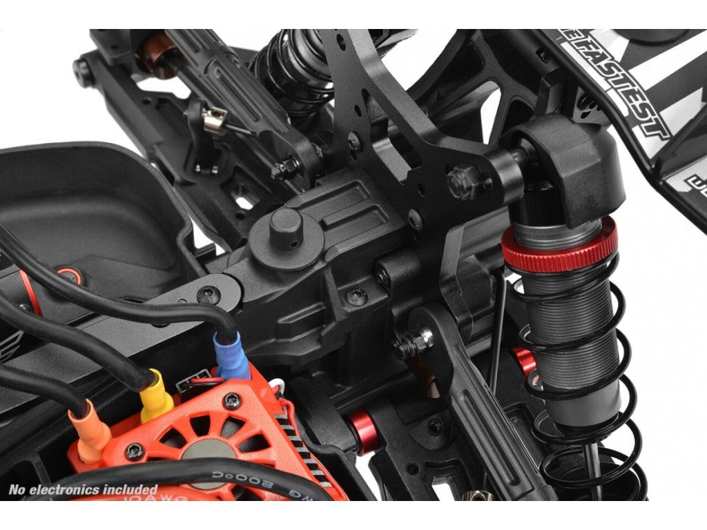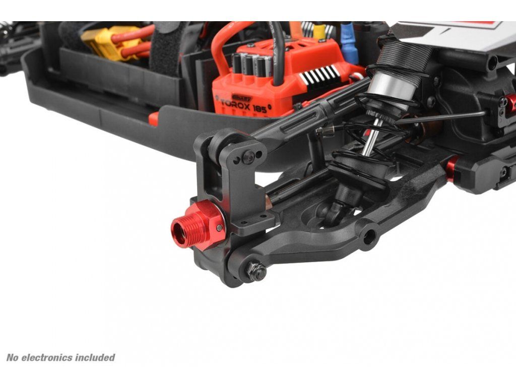 Dodávaný Regulátor Team Corally Torox 185A 4-6S (není součástí balení) je kromě dalších bezpečnostních a výkonnostních možností vybaven ochranou LiPo akumulátoru, zatímco 4pólový střídavý motor Team Corally Kuron 2050kV (není součástí balení) poskytuje působivou rychlost a točivý moment. Přesné ovládání řízení zajišťuje HV-7225 HV Servo s kovovými převody (není součástí balení). Pohodlná 2,4GHz vysílačka CT2R (není součástí balení) poskytuje pevné rádiové spojení a nastavitelné funkce pro pohodlí při řízení.