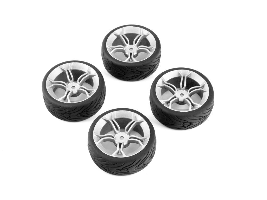 Spec T MS Wheel Offset 3 Silver w/Tire 4ks pro 1/10 Silniční