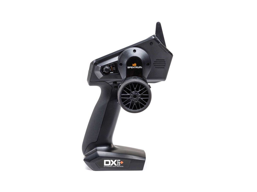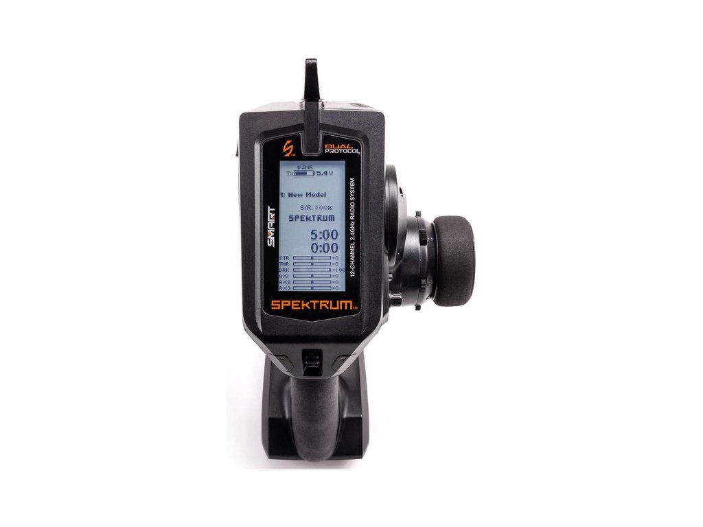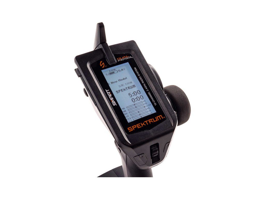Volantový 12kanálový vysílač Spektrum DX Pro+ se špičkovou přizpůsobitelnou ergonomií, duálním protokolem DSMR+ i SLT a podporou Spektrum Smart. Paměť na 250 modelů, velký LCD displej, intuitivní ovládání, široké možnosti nastavení. Vibrační upozornění. Včetně 3kanálového přijímače SR2100.