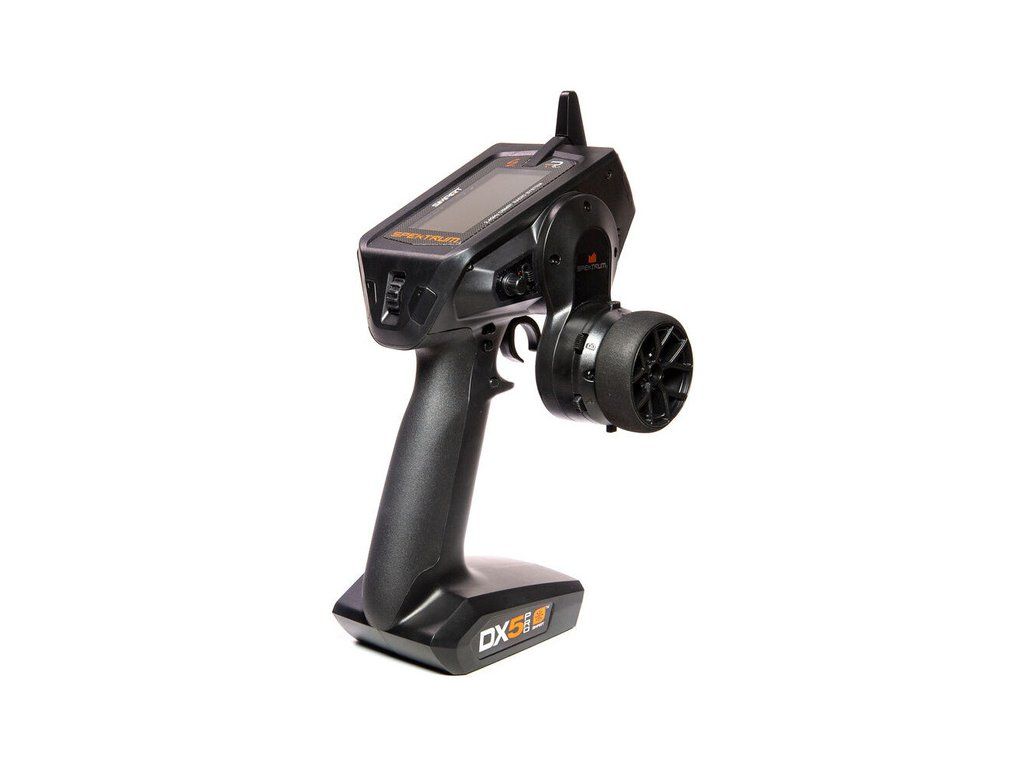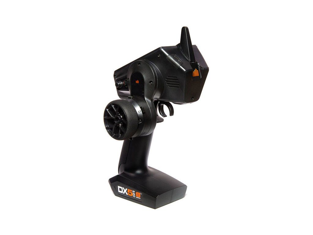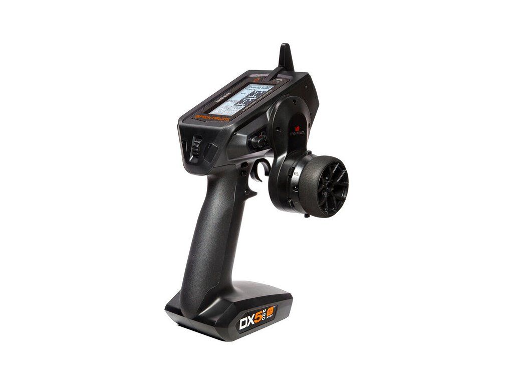 Volantový 5-ti kanálový RC vysílač DX5 Pro 2021 s technologií Spektrum Smart. Lehký, precizní vysílač s displejem a pokročilými funkcemi - nastavení regulátorů Spektrum Firma přes vysílač, kompletní telemetrie, stabilizace AVC, ABS, mixy, paměť pro 250 modelů, latence 5.5ms.