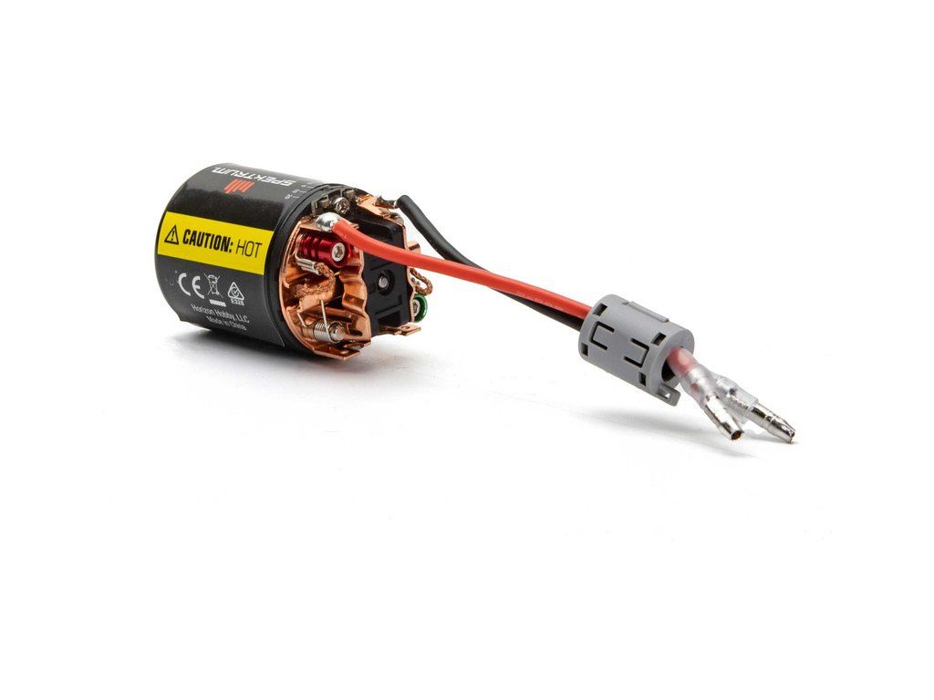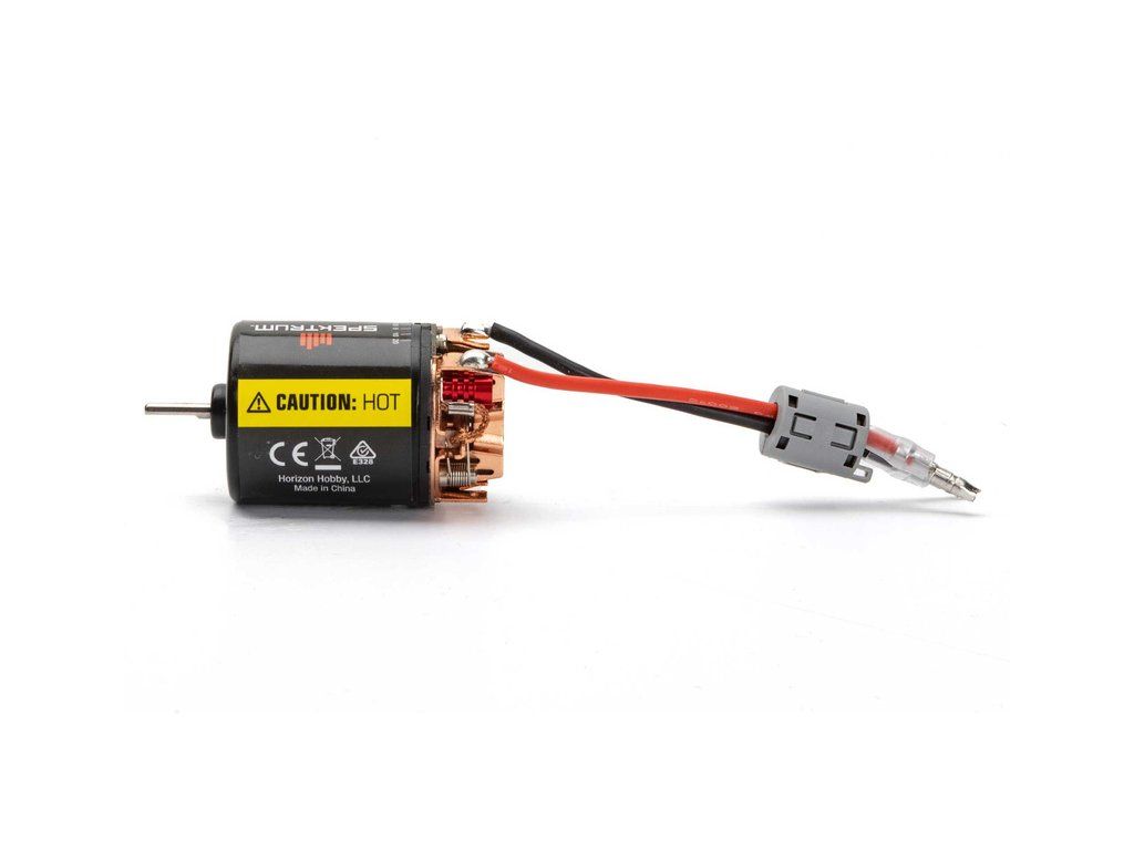 Stejnosměrný motor Spektrum Firma řady 540 s 16 závity, pro RC modely aut - crawlery a expedice. Hřídel uložená v kuličkových ložiscích, vyměnitelné kartáčky, možnost časování motoru, 5 zubový rotor pro hladký chod. Napájení 2S LiPo/6-7 čl. NiMH. Konektory 3.5mm.