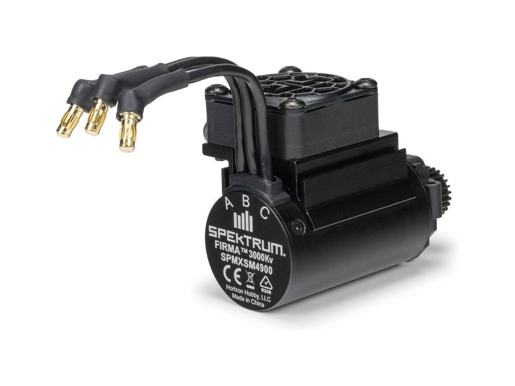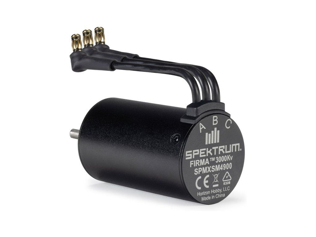 Spektrum motor střídavý Firma 2848 3000Kv, se 4-pólovým provedením, CNC obráběným hliníkovým tělem, lakovaným měděným vinutím, kvalitními kuličkovými ložisky a ocelovou výstupní hřídelí, 3.17 mm. Napájení 7.4 – 11.1 V. Vhodné pro RC modely aut 1:16, například Arrma Mini Kraton.