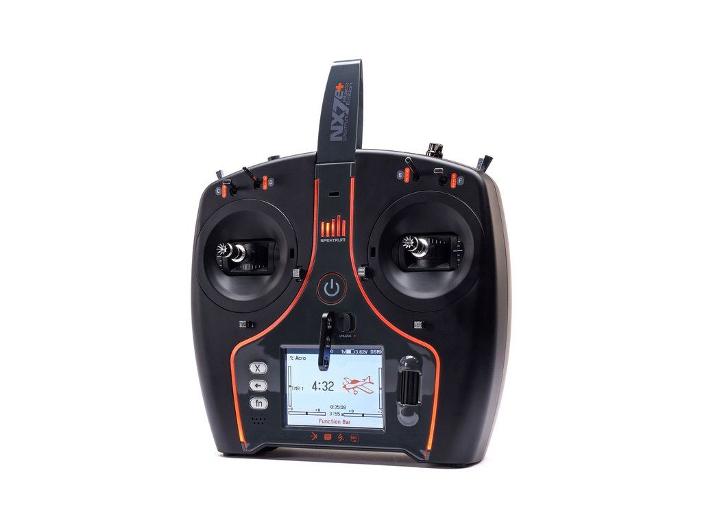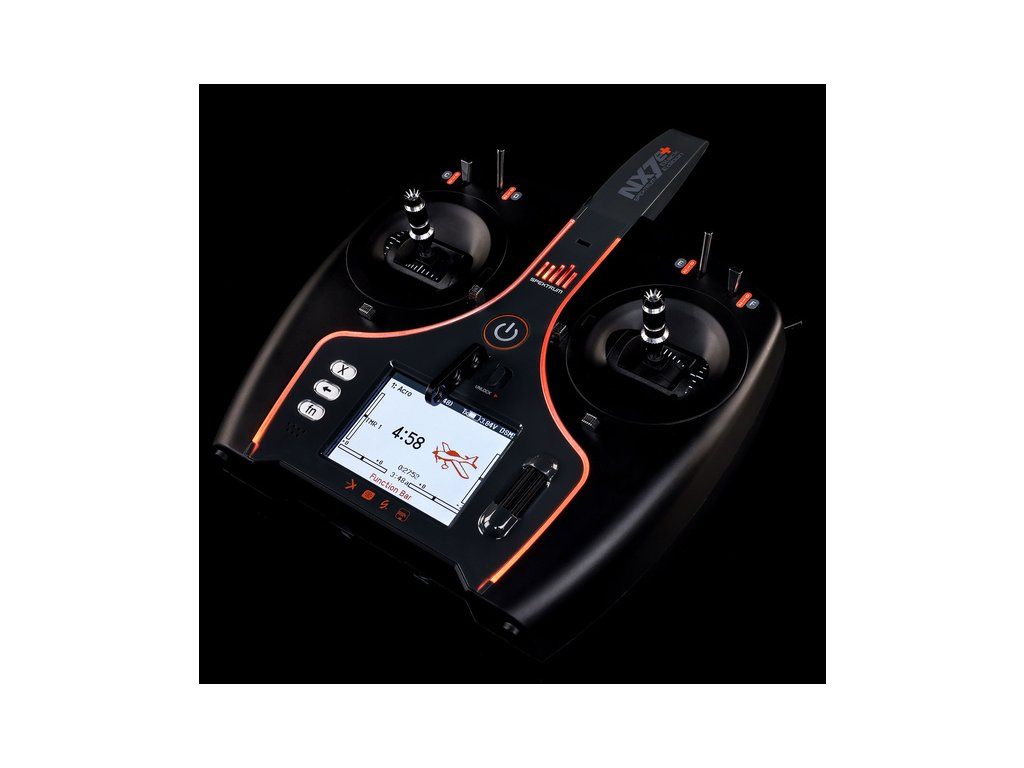 Vysílač Spektrum NX7e+ DSMX Black Edition se 14 kanály je určen pro začínající i pokročilé piloty. Nabízí moderní technologii DSMX®, exkluzivní software Spektrum AirWare™ a mnoho dalších funkcí. Má barevný displej, LiIon baterii, kompatibilitu Smart, port USB a Micro SD. Nové funkce nastavení.