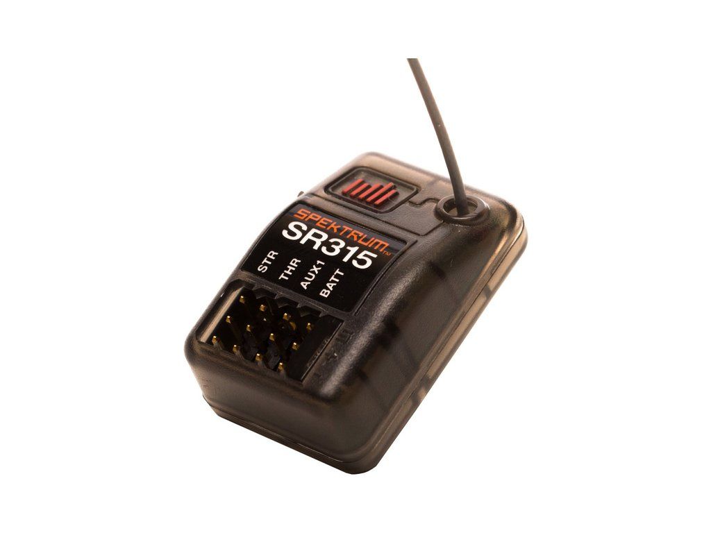 3-kanálový přijímač Spektrum SR315 nové generace v mikro provedení, s rámcovou rychlostí 5,5ms, poskytuje rychlejší připojení s nízkým zpožděním a párováním tlačítkem bez nutnosti mít párovací konektor. Modulace DSM2, DSMR a SLT. Nový design je ideální pro zástavbu do malých aut. Možnost výběru SmartSafe nebo Gas Failsafe.