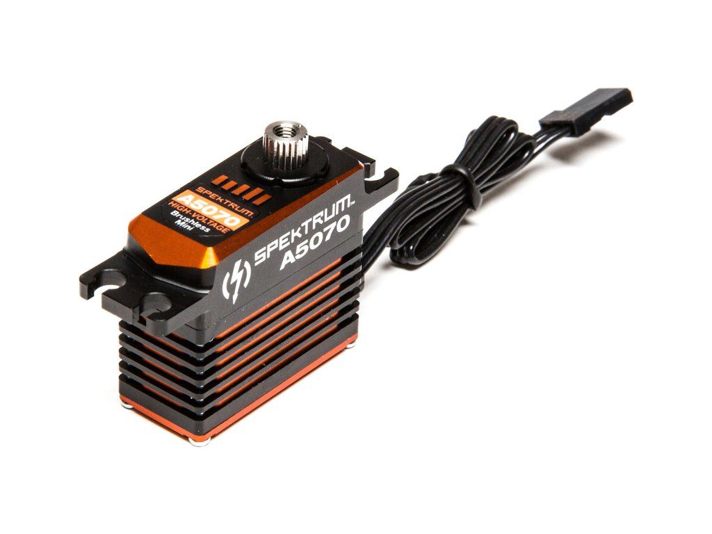 Výkonné a rychlé mini servo A5070 má moment 10kg.cm, rychlost 0,073s/60°, napájení HV pro RC modely letadel. Hmotnost 42g, rozměry 35,6mm x 32,5mm x 15mm. Střídavý motor je nainstalován v hliníkové krabičce, která dobře odvádí teplo. Tisícihran 23T