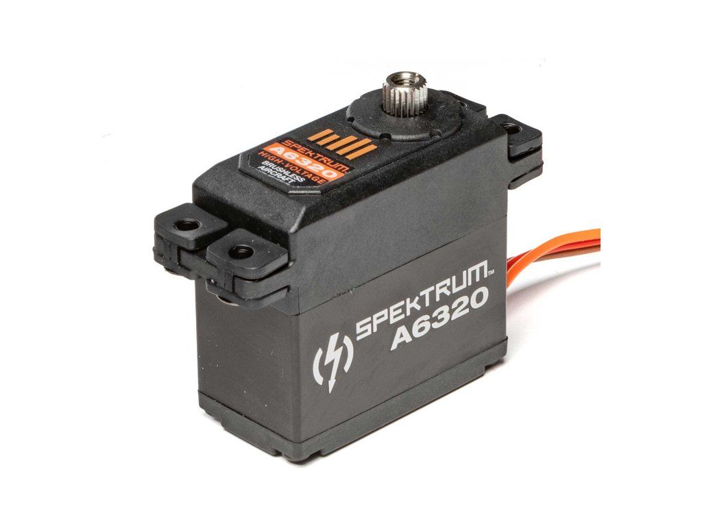 Digitální standardní servo Spektrum A6320. Napájení 6-8,4V, střídavý motor, hliníková krabička, kovové převody, přesné a rychlé digitální servo pro motorové akrobatické modely 30-50cc nebo obří sportovní modely. Rozměry 20 x 40 x 39 mm, hmotnost 62g. Moment 19kg.cm @ 8.4V, 18kg.cm @ 7.4V.