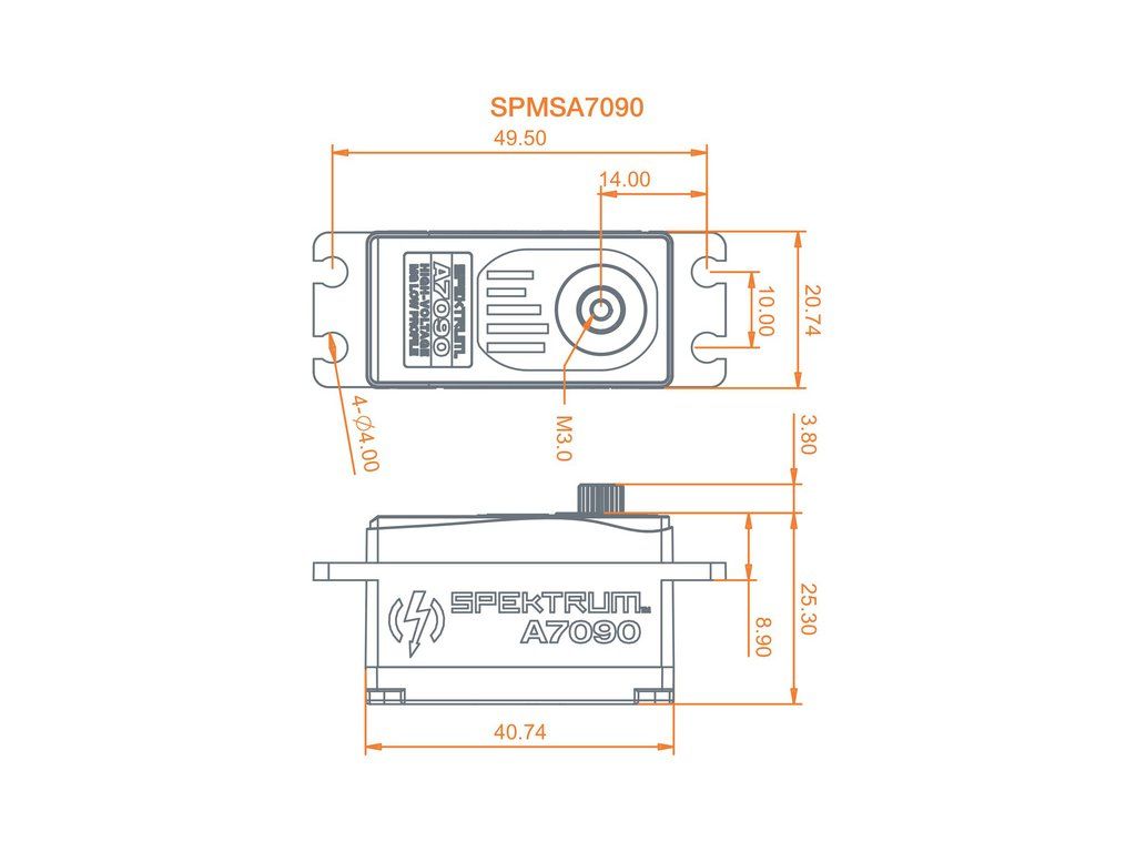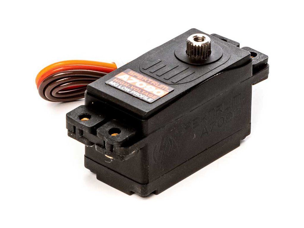 Digitální nízké servo standardní velikosti A7090 se střídavým motorem pro standardní RC modely letadel. Kovové převody, dvě ložiska, napájení 4.8-8.4V, moment 14-18kg.cm, rychlost 0.17-0.068s/60°, hmotnost 50g, rozměry 40x20x25mm, tisícihran 23T.