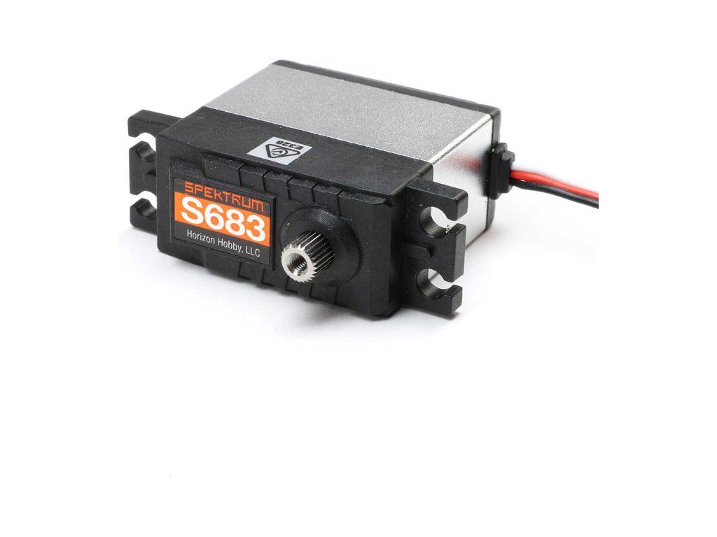 Digitální servo Spektrum S683. Kovové převody, kovová středová krabička, napájení 6V, moment 19kg.cm. Tisícihran 25T. Vhodné pro RC modely aut 1:8 až 1:10. Tuningový díl pro model Axial Gilamon AXP8.