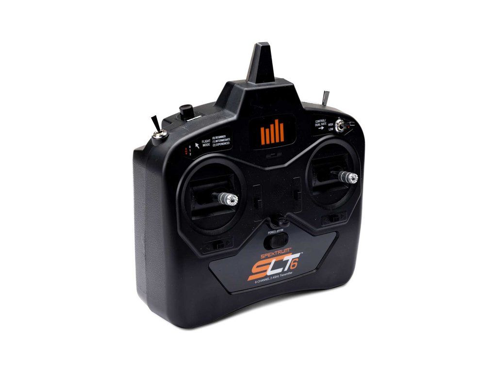 Spektrum SLT6 je 6kanálový vysílač 2.4 GHz s protokolem SLT. Obsahuje 1x tlačítko, 1x 3-polohový přepínač, 2x 2-polohový přepínač. USB port pro kompatibilitu se simulátorem RealFlight® RC Flight.