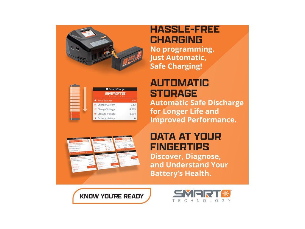 LiPo akumulátor Spektrum Smart G2 LiPol 7,4V 4000mAh 30C HC IC5 je novou generací akumulátorů bez konektoru balancéru, s datovým kabelem IC5. Vyžadován je nabíječ Spektrum™ Smart. Integrovaný mikročip ukládá jedinečné parametry každé baterie. Rozměry: 138 x 46 x 25 mm.
