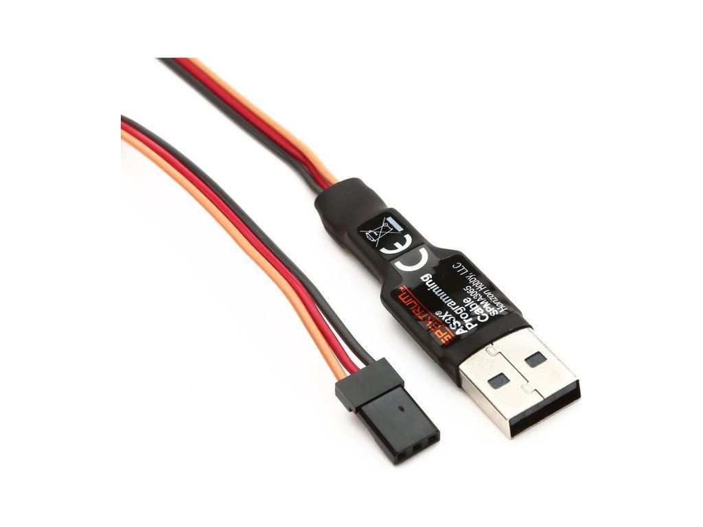 USB programovací kabel pro programování AS3X přijímačů Spektrum (AR636, AR6335, AR7350, AR9350) a vysílačů Spektrum DXe. Kabel lze použít jak pro osobní počítače, tak i k mobilním telefonům či tabletům disponující USB konektivitou.