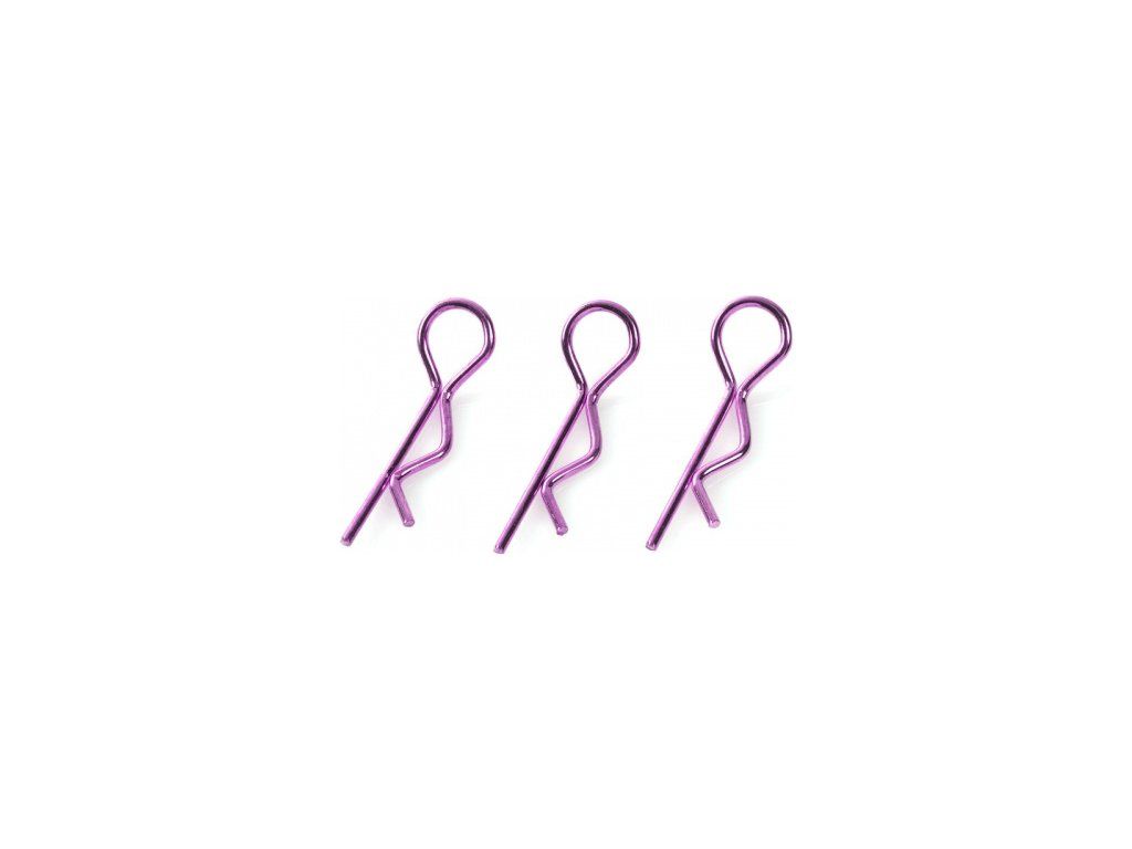 Náhradní díl pro RC modely aut v měřítku 1:8: Sponka karosérie velká zahnutá fialová (10 ks).