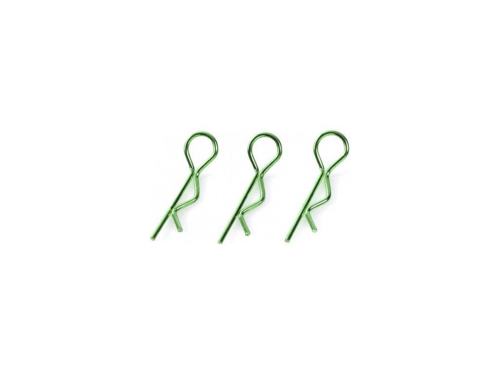 Náhradní díl pro RC modely aut v měřítku 1:8: Sponka karosérie velká zahnutá zelená (10 ks).
