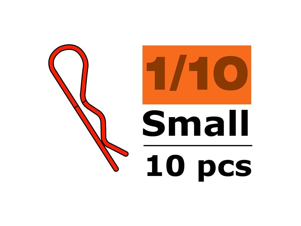 Náhradní díl pro RC modely aut v měřítku 1:10: Sponka karosérie malá 45° červená (10 ks).