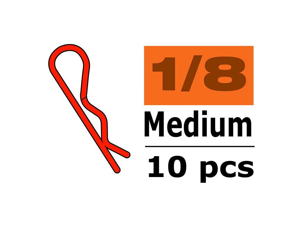 Náhradní díl pro RC modely aut v měřítku 1:8: Sponka karosérie střední 45° červená (10 ks).