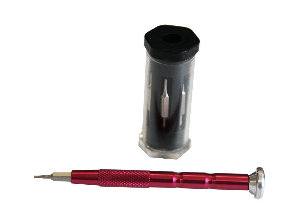 Sada šroubováku s výměnnými mini bity. V balení kovová ručka, mini bity v praktickém plastovém balení. Bity jsou z materiálu SNCM 8860, celková délku bitu 30 mm ( délka dříku 17 mm ), délka rukojeti 90 mm a průměr 8 mm.
