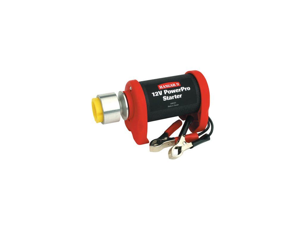 Startér pro spalovací motory do objemu 20 cm³. Hliníkový unášeč obsahuje silikonovou vložku, která roztočí vrtulovým kuželem, který je potřeba namontovat na hřídel motoru. Startét obsahuje kabel krokosvorkami. Doporučena je 12V Pb baterie.