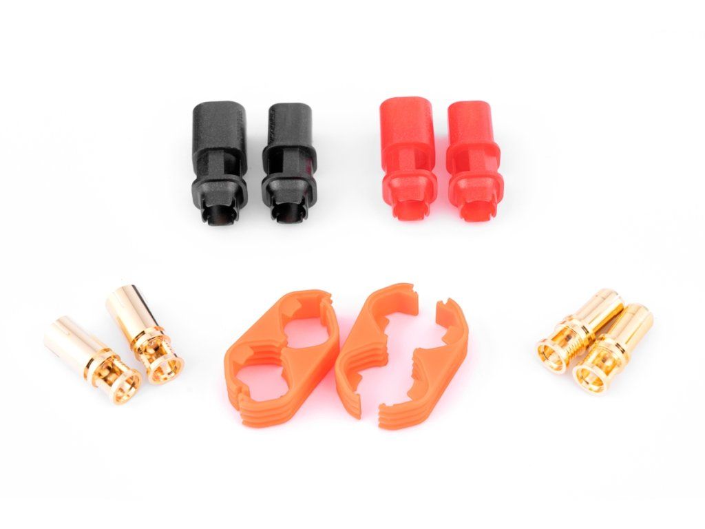 Zlacené 6mm konektory se společným domkem pro 5-8,4 mm2 (8-10AWG) kabel. Konstantní proud 200A, špičkový 240A. Pájecí varianta. Balení 2 páry (1 červený a 1 černý).Doplňkové parametry
