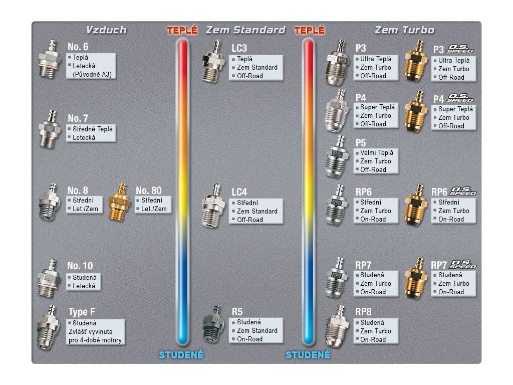 Žhavící svíčka teplá/střední pro dvoutaktní letecké motory OS středních kubatur (5-15 ccm) při použití paliva s 5-15% nitromethanu.