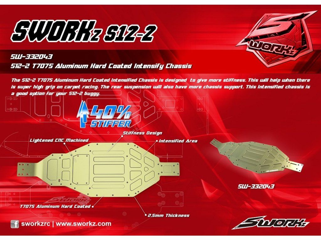 SWORKz 1/10 S12-2 hliníkové šasi "Intensify", tvrzené, 1 ks.