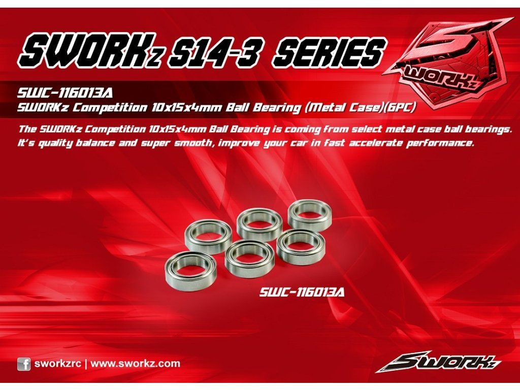 SWORKz Competition Professional kuličkové ložiska 10x15x4mm, kovové prachovky, 6 ks.