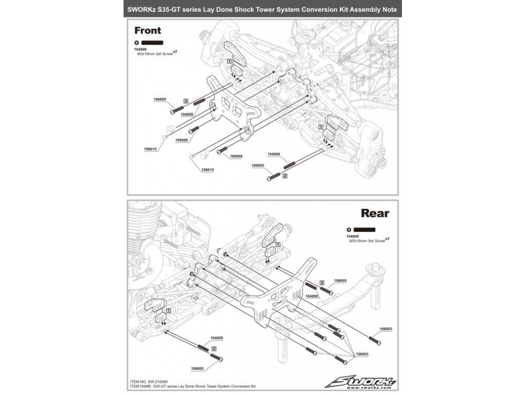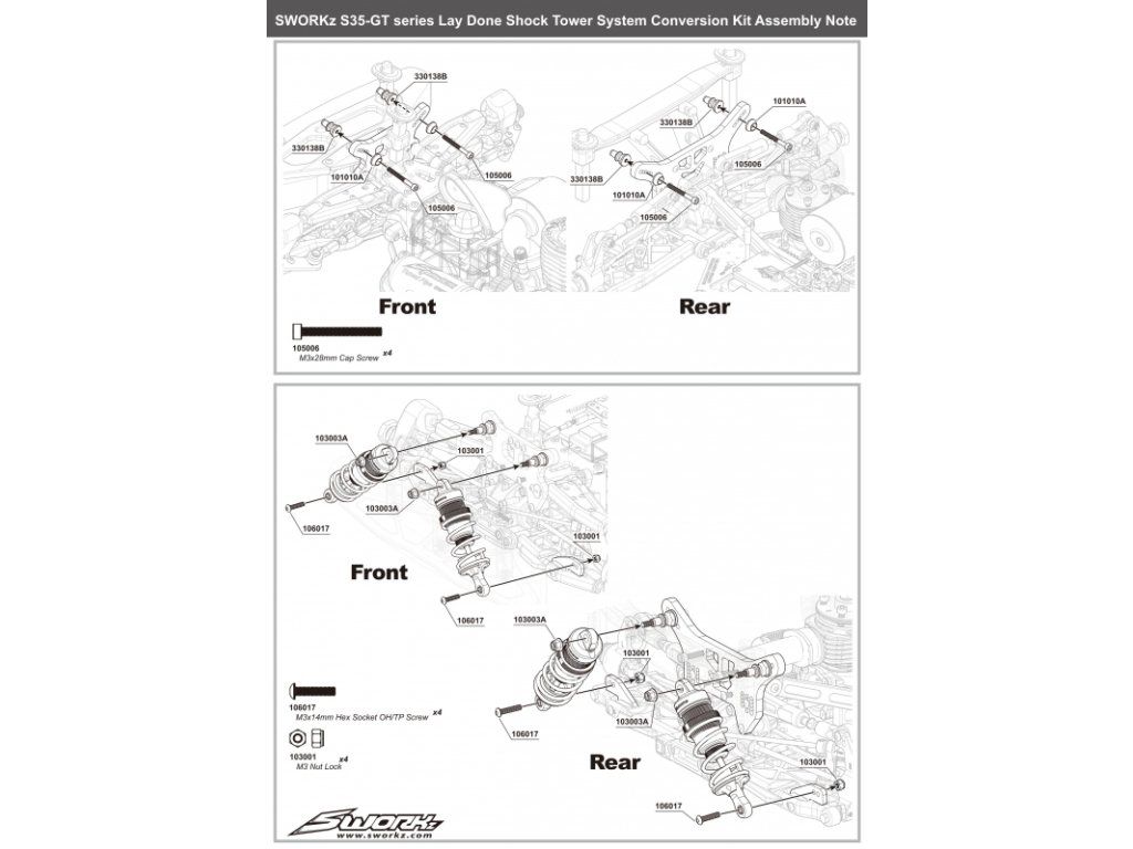 SWORKz GT uhlíkové přední a zadní parohy/držáky tlumičů, 1 sada