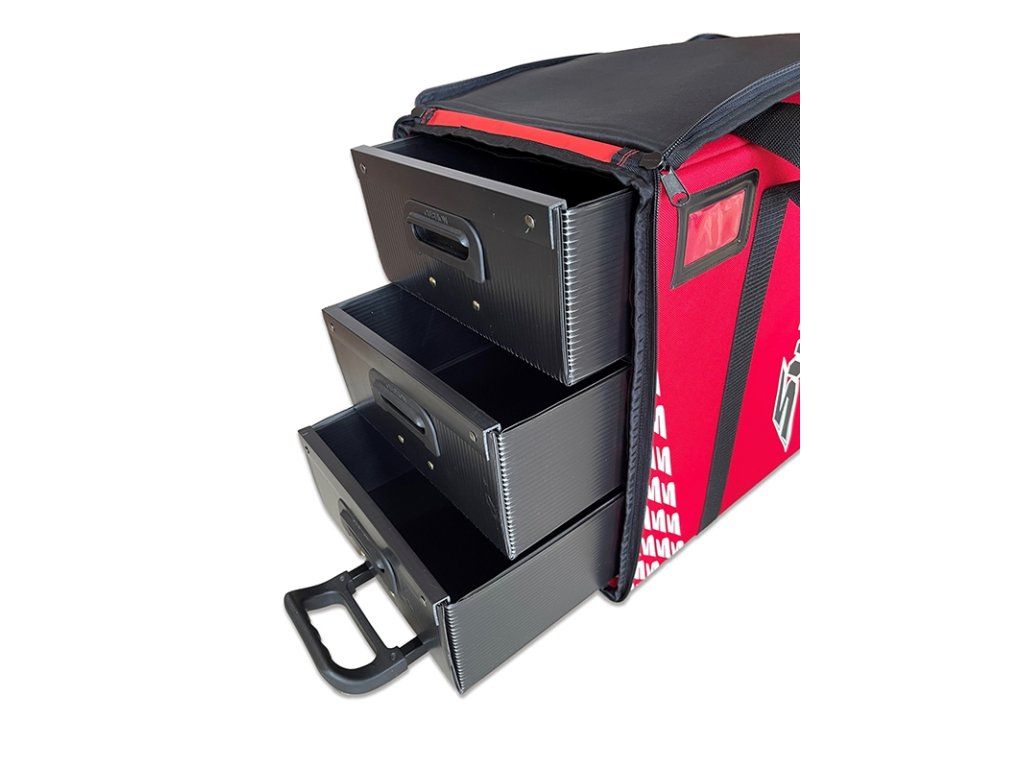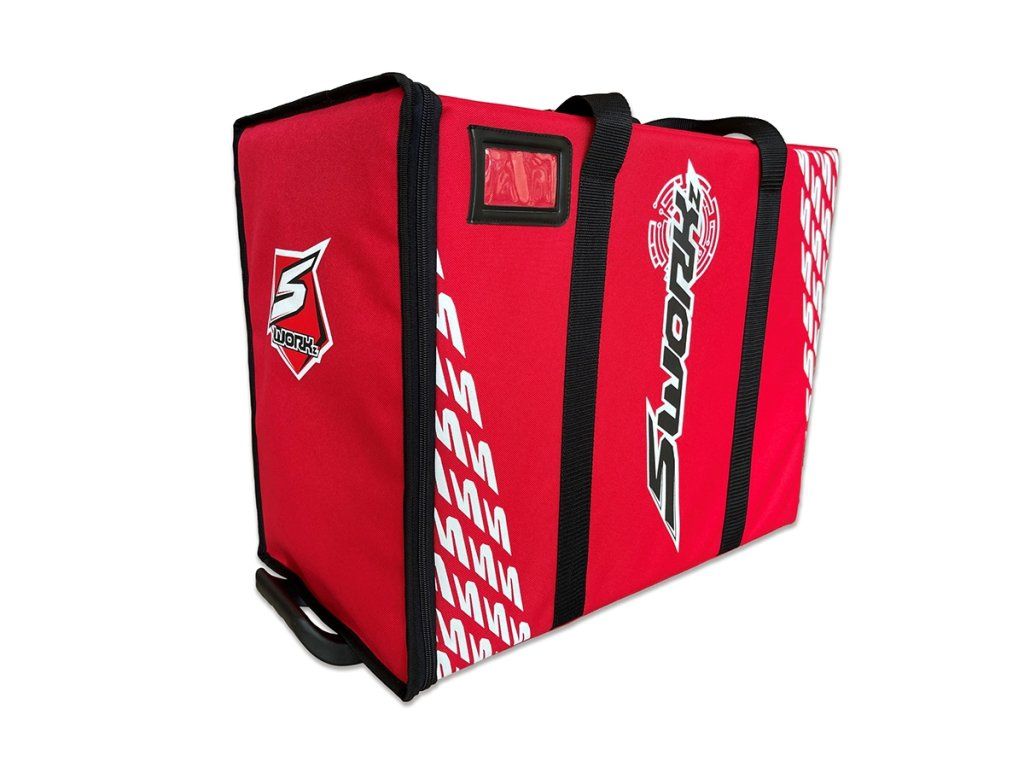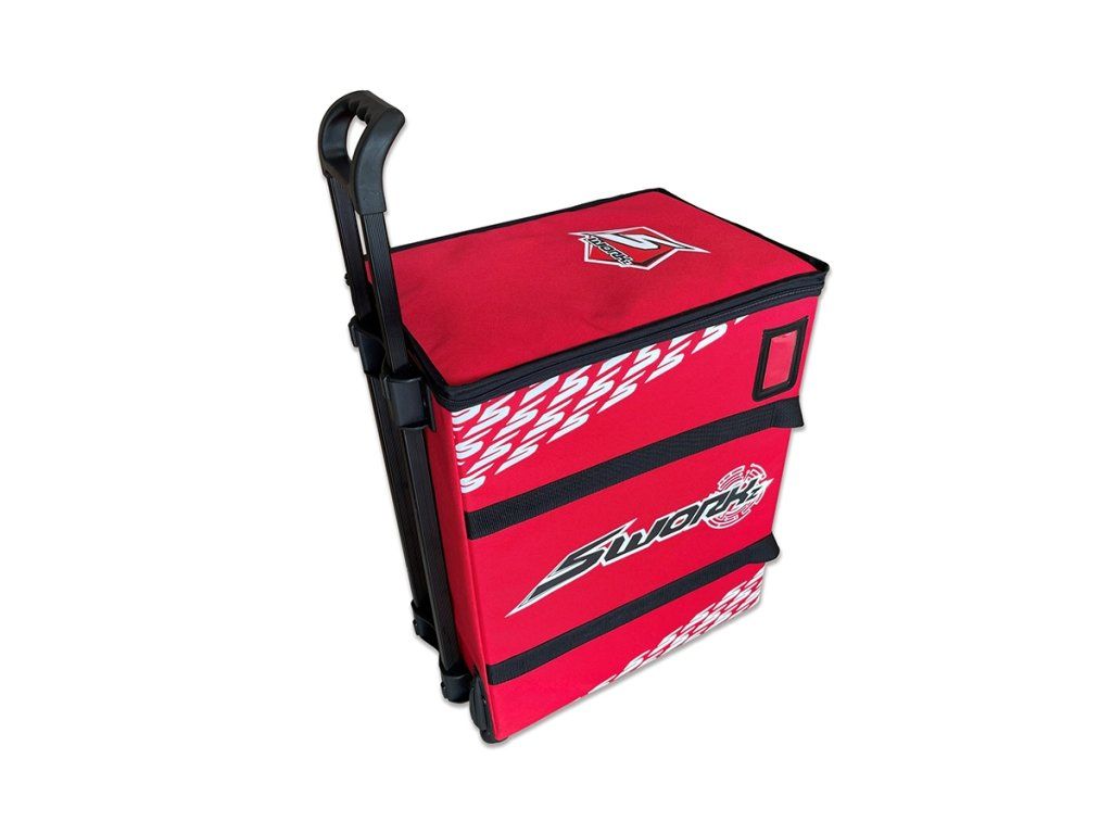 Nová taška SWORKz Racing Trolley má nové designové logo a je vyrobena z vysoce kvalitních materiálů. Zachovává si stejný design se 3 zásuvkami (velikost 1/10 touring) vyrobenými z materiálu PP, zatímco vnější materiál je vyroben jako potápěčské obleky.
