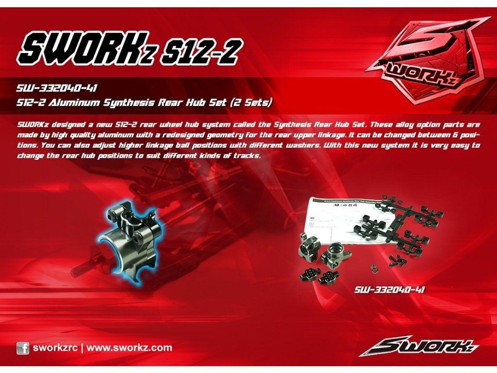 SWORKz S12-2 zadní hliníkové náboje kol včetně plastových vložek, 1 sada