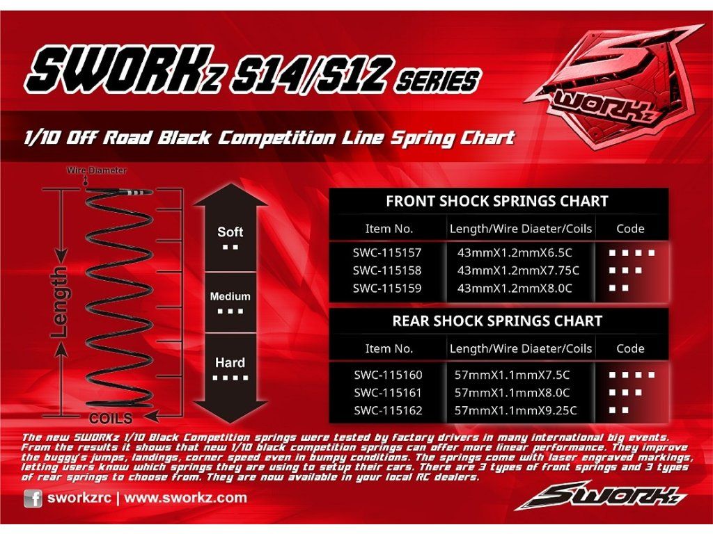SWORKz S14/S12 Competition černé pružiny olej. tlumičů, zadní L2, 57x1.1x9.25mm, 2 ks.