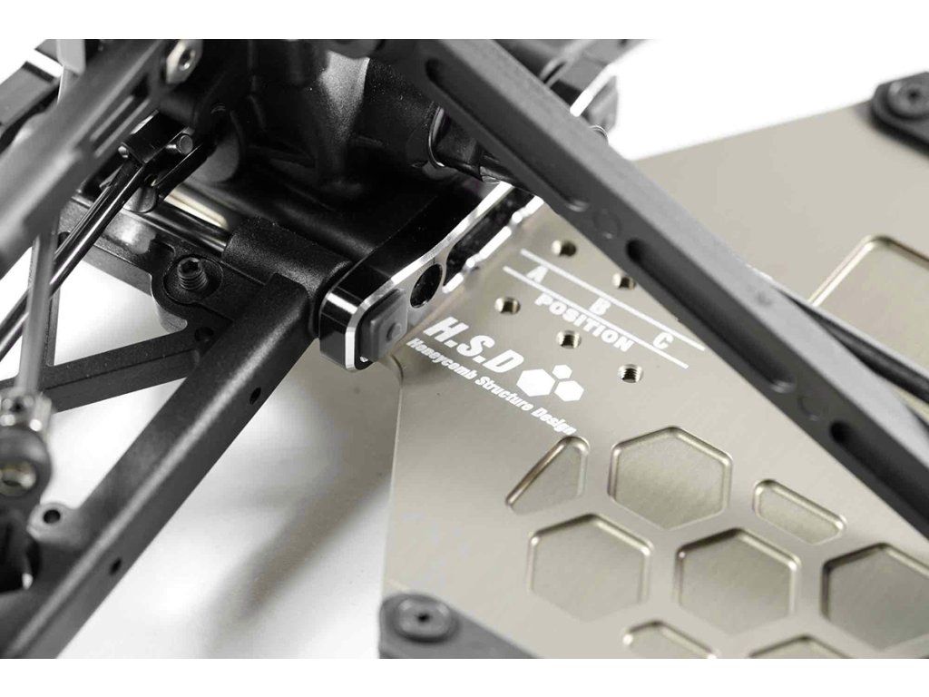 Model S35-4 EVO je vybaven tvrdě eloxovaným a odlehčeným hliníkovým podvozkem T7075 s novou konstrukcí s krátkým rozvorem kol, která byla dlouhodobě testována našimi továrními piloty a která zaručuje nejlepší vyvážení rychlosti předního i zadního zavěšení.