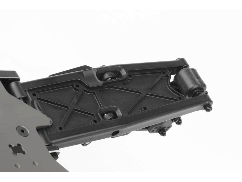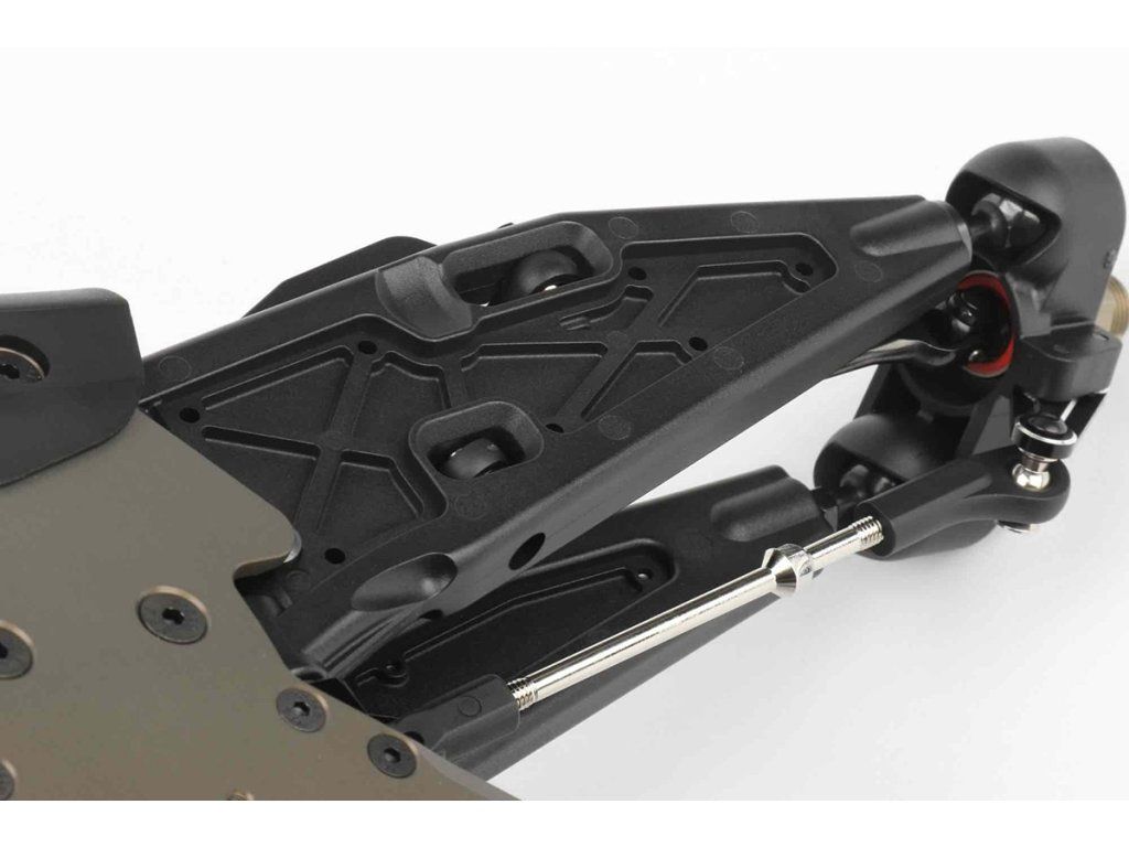 With the new toe-in plates, which now contain square inserts, you can adjust the geometry of your SWORKz S35-T2 to fit every track layout and track condition. The lower arms are made of a newly developed composite material and fit perfectly to the new chassis. Side guards were redesigned as well. With the new lightened wing support you can adjust various positions and the angle of the wing to give your SWORKz S35-T2 the best stability on the track. Together with the “Speed Rhinoceros III” body shell, perfect aerodynamics is achieved.