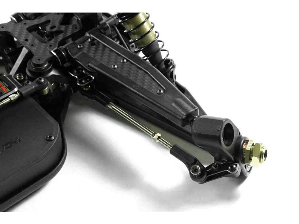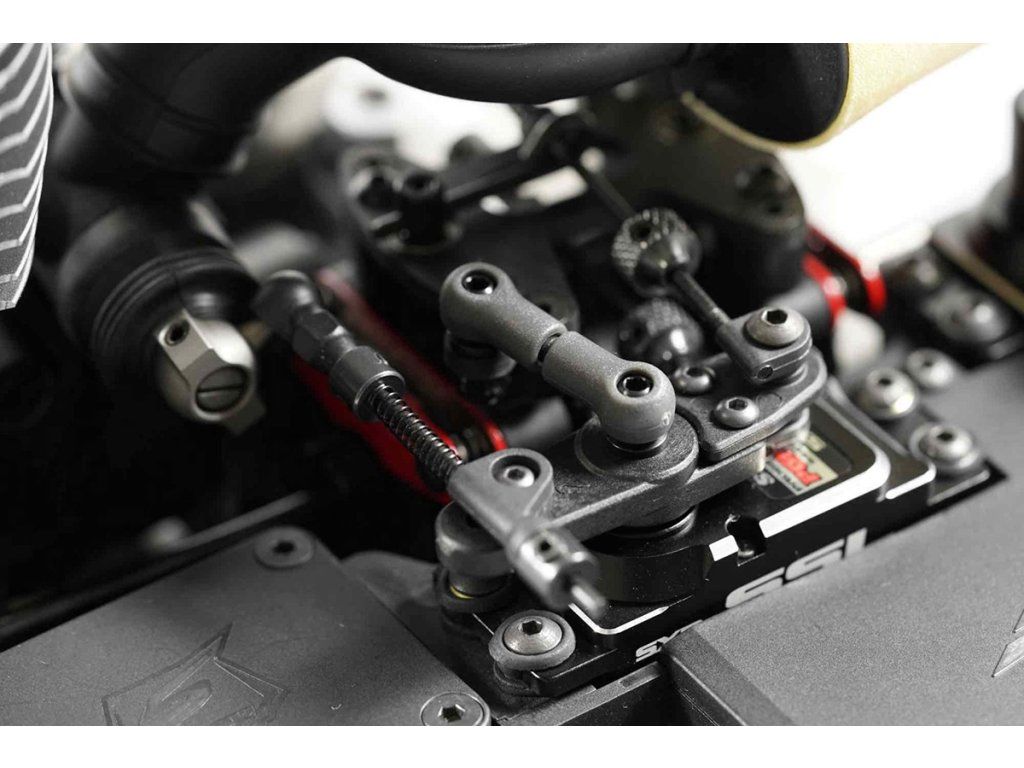 The newly developed Truggy HET differentials are included and provide traction that was not possible before. The new S35-T2 comes with a longer shock layout in the front and rear. The construction of the shocks is adapted to that new optimized layout. The smart holder for shock spring plates makes it almost impossible to lose them anymore. The steering geometry, with new Ackerman and steering plates, gives the driver a feeling of total control over the SWORKz S35-T2.