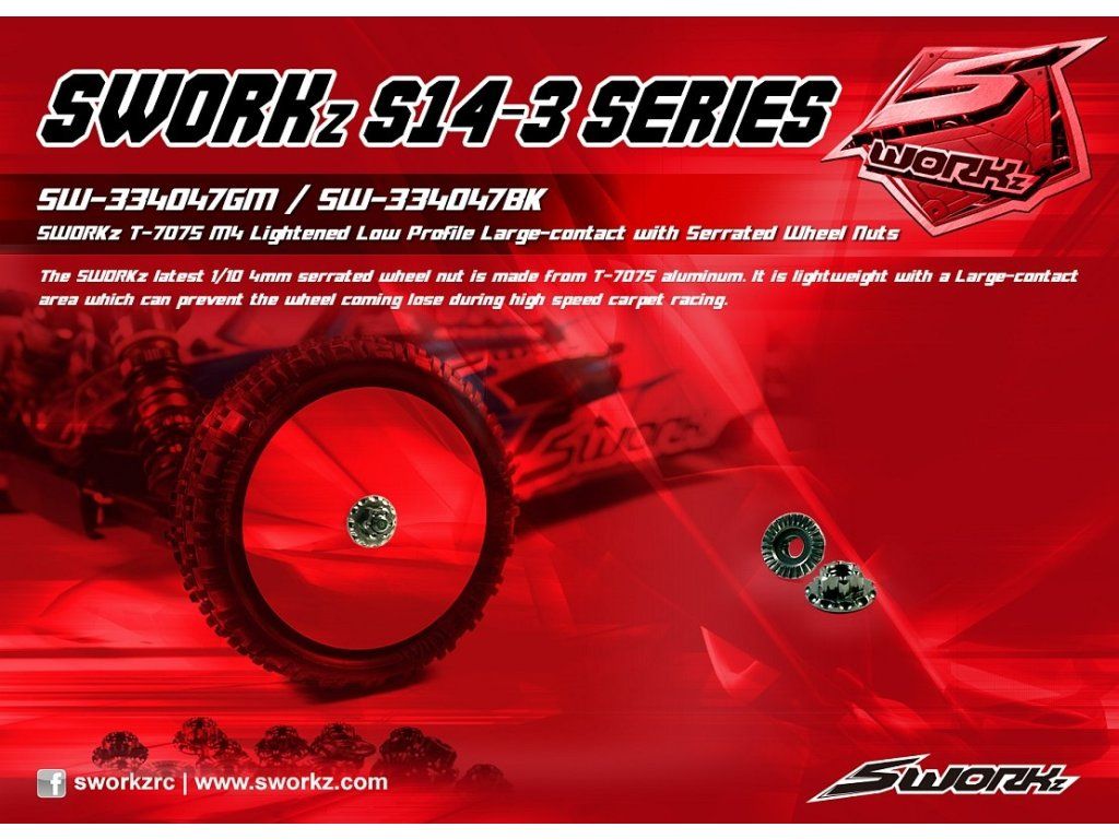 SWORKz T-7075 hliníkové M4 matky kol s ploškou, černé, 6 ks.