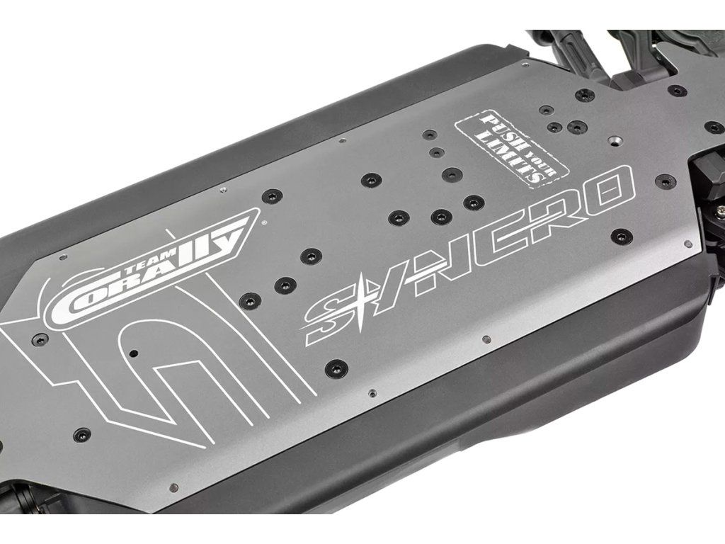 Každá součástka modelu Syncro je navržena s ohledem na odolnost a výkon. Jeho robustní systém zavěšení, inspirovaný vysoce výkonnou řadou 6S týmu Corally, obsahuje odolná ramena zavěšení, zesílené bloky řízení a odolné zadní těhlice. Tyto komponenty pracují v harmonii, aby si model snadno poradil se skoky, nerovnostmi a náročným terénem. Big Bore kompozitové tlumiče a robustní věže tlumičů udržují stabilitu modelu, zatímco lehký, ale pevný podvozek zajišťuje, že je připraven zvládnout jakékoli dobrodružství. Přidejte funkce, jako je kluzná spojka a ocelové převody a výsledkem je zábavná a spolehlivá buggy Syncro.