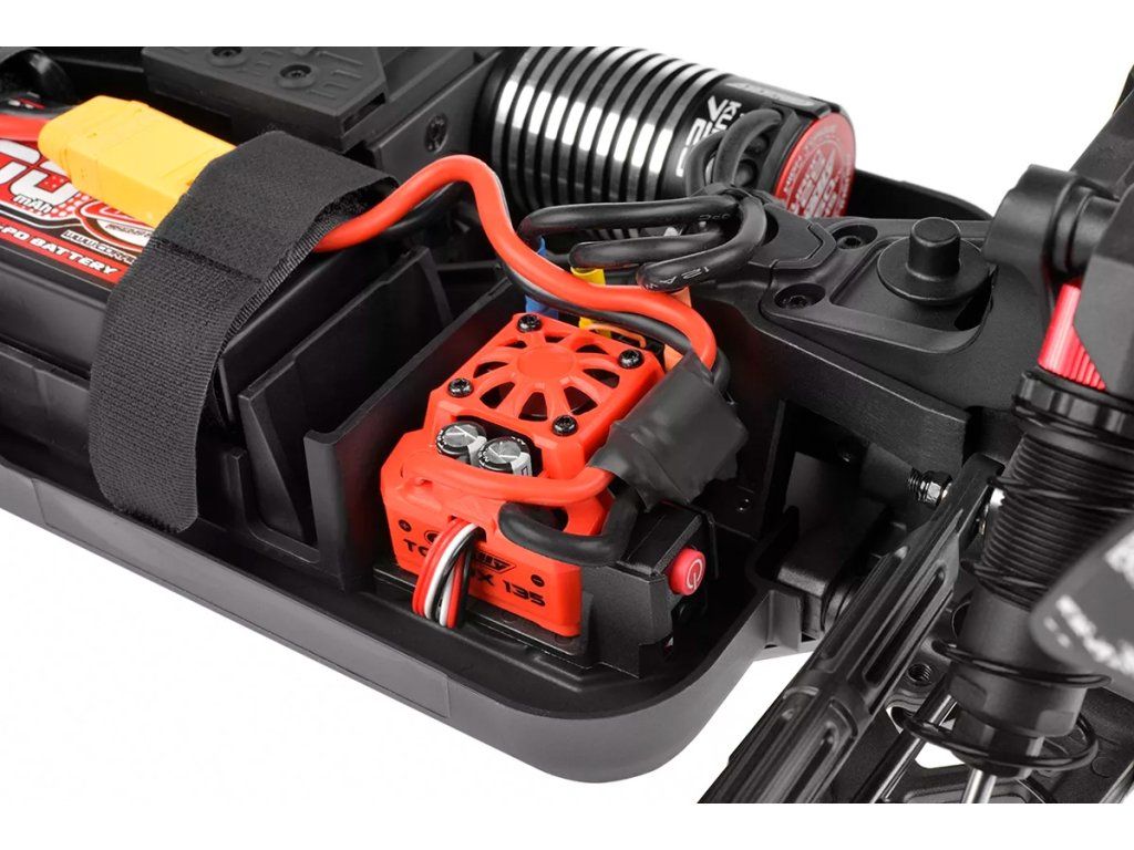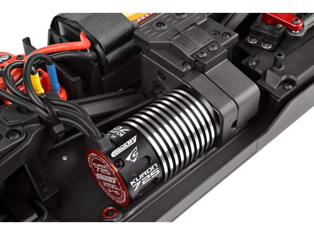 Hned po vybalení z krabice je model Syncro připraven vyrazit na trať. Jeho pokročilý regulátor PULSE G2 135 ESC poskytuje plynulý, ovladatelný výkon, zatímco střídavý motor Kuron 725 zajišťuje, že budete mít vždy dostatek rychlosti. Díky robustnímu digitálnímu servu HV7225, které se stará o řízení, si užijete přesné ovládání v jakémkoli terénu.
