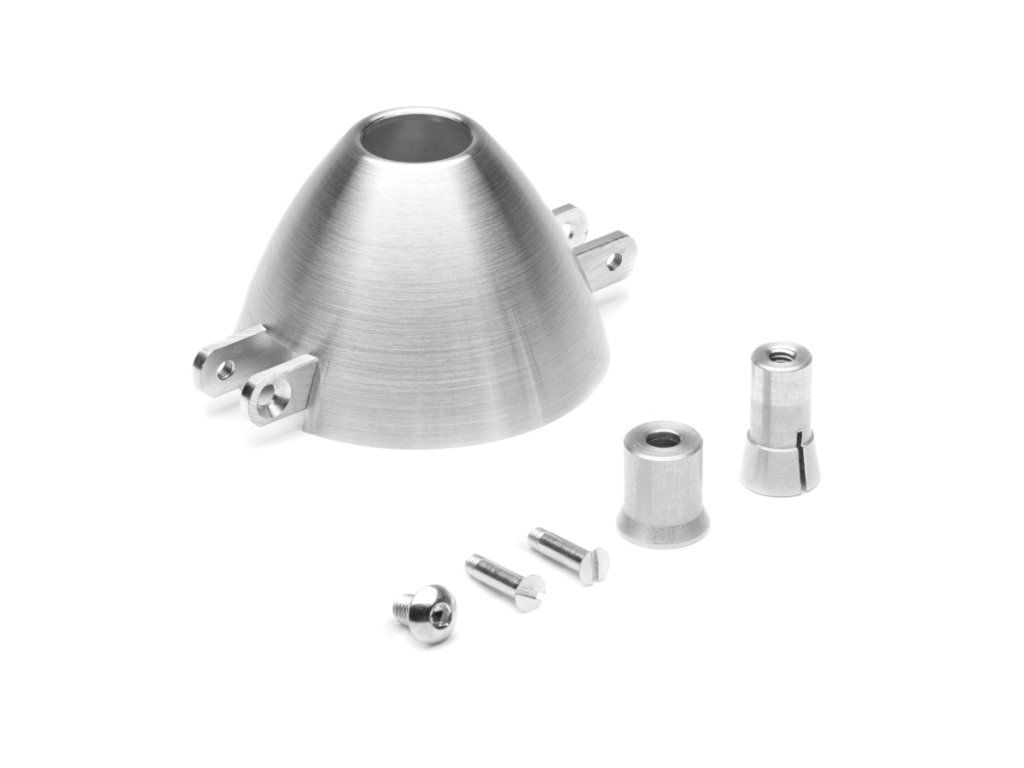 Precizní duralový TURBO kužel pro sklopnou vrtuli o průměru 50 mm s kleštinou 6,0mm, s 3 mm čepy pro vrtulové listy s kořenem o tlouštce 8 mm. Vyrobeno v České republice.Doplňkové parametry