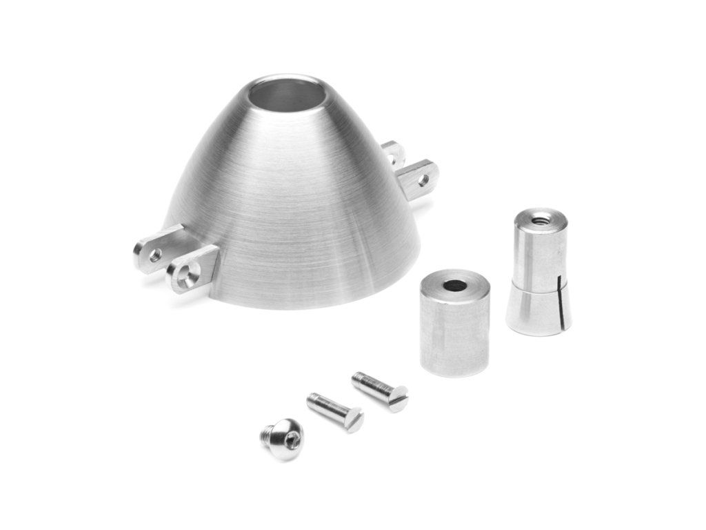 Precizní duralový TURBO kužel pro sklopnou vrtuli o průměru 50 mm s kleštinou 8,0mm, s 3 mm čepy pro vrtulové listy s kořenem o tlouštce 8 mm. Vyrobeno v České republice.Doplňkové parametry