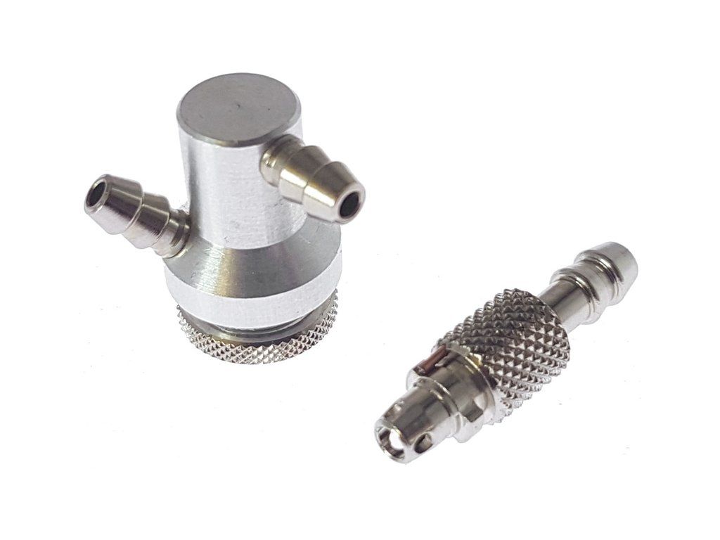 Tankovací ventil pro benzin malý kovový, délka celk. 21mm, průměr 14mm, vnější průměr trysky pro hadičku 4mm.