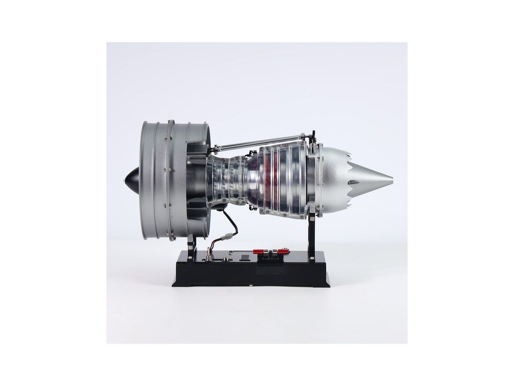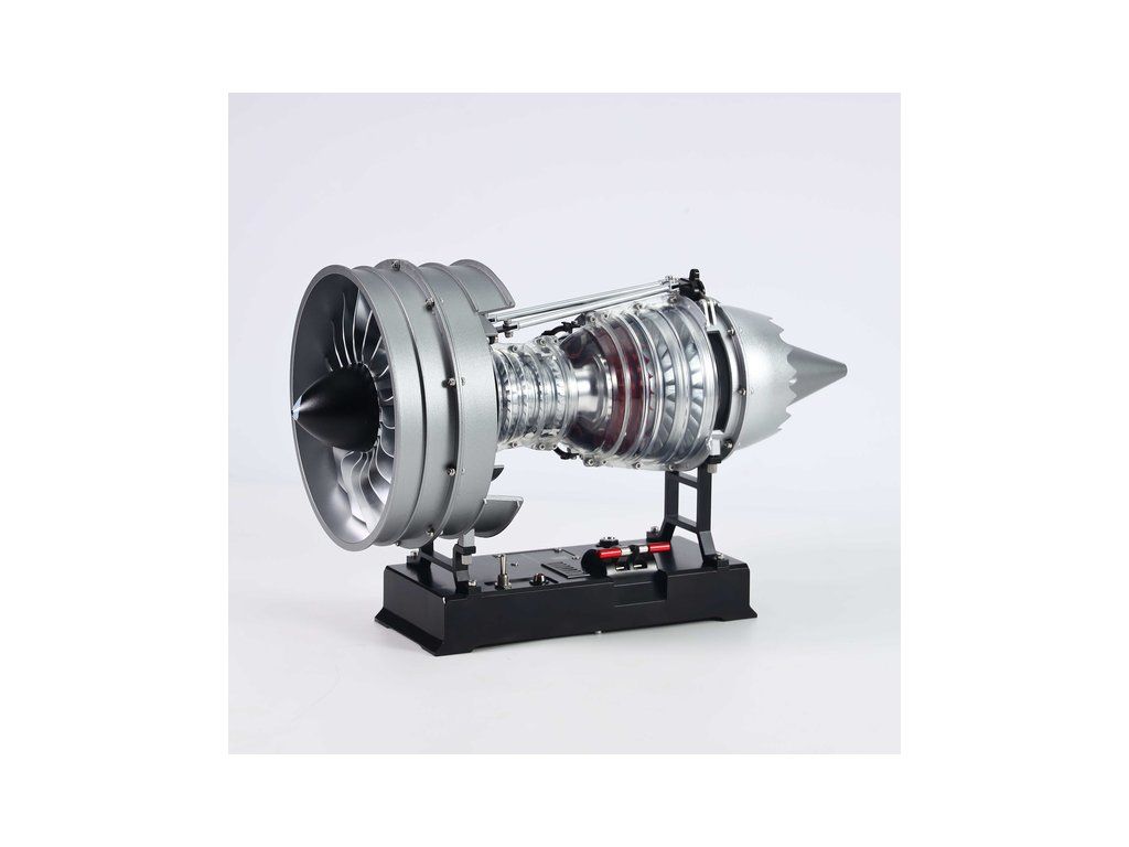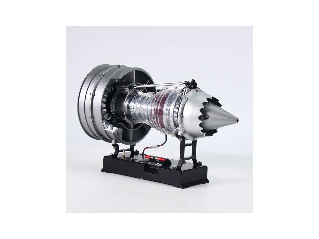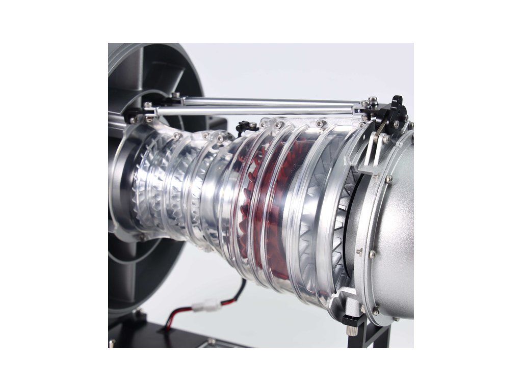 Stavebnice precizního kovového modelu Teching - proudový motor 1:15. Autenticky zpracovaná konstrukce skutečného motoru s čirým krytem pro ukázku provozu. Model nabízí realistické mechanické funkce - pohyb rotoru všech stupňů. Elektrické otáčení motoru. Výstavní model.