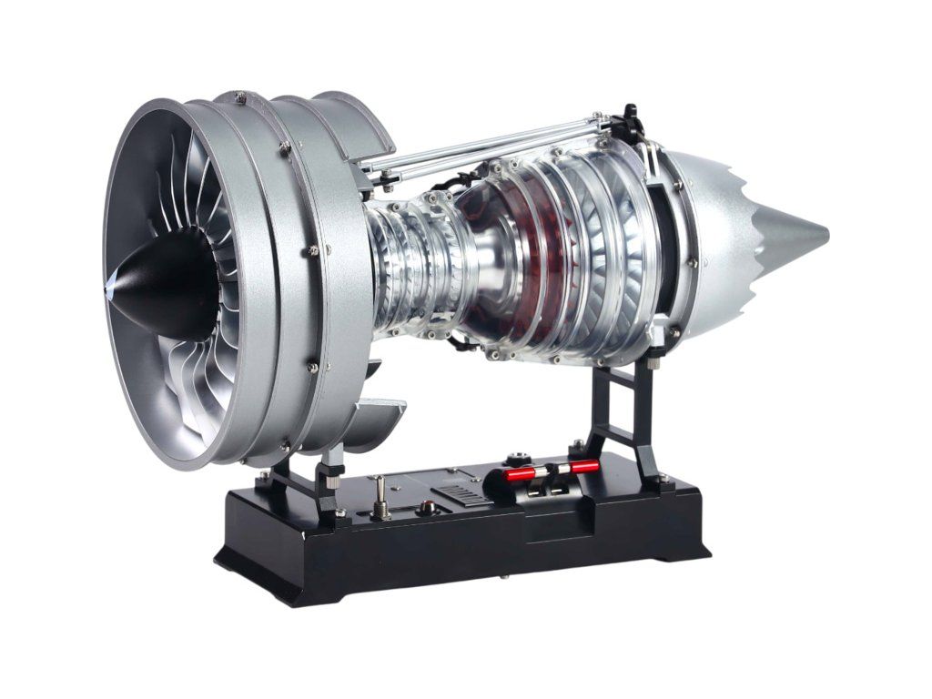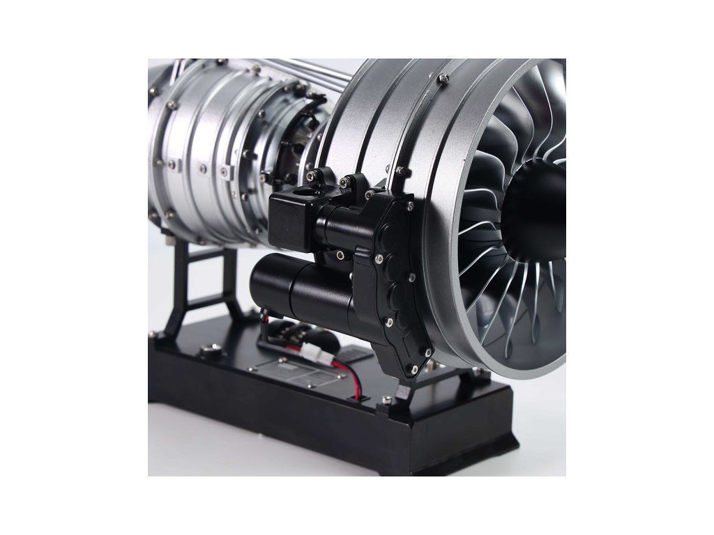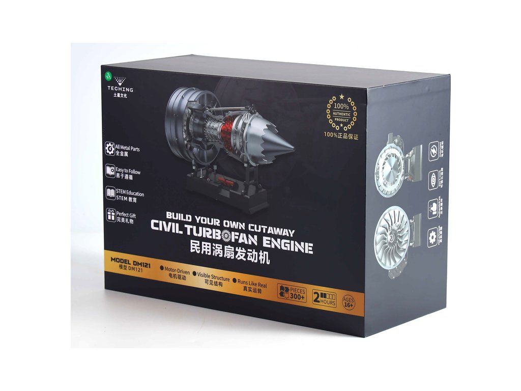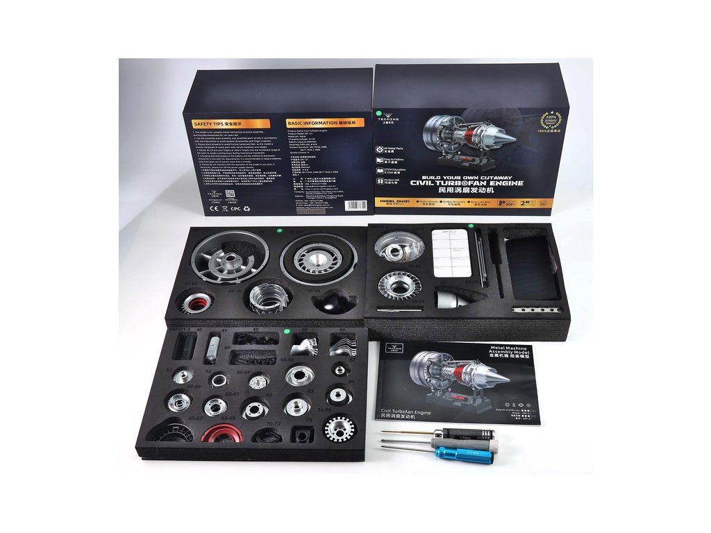 Stavebnice precizního kovového modelu Teching - proudový motor 1:15. Autenticky zpracovaná konstrukce skutečného motoru s čirým krytem pro ukázku provozu. Model nabízí realistické mechanické funkce - pohyb rotoru všech stupňů. Elektrické otáčení motoru. Výstavní model.