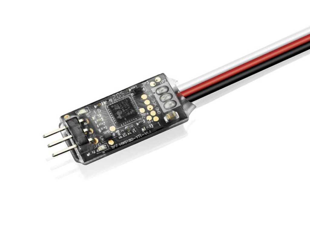 S.BUS2 telemetrický adaptér umožňující přenos telemetrických dat z regulátorů Hobbywing (podporujících přenos dat v reálném čase - některé z řady Platinum V4/V4.1/V5 a některé XERUN) do telemetrických přijímačů Futaba s S.BUS2 portem a následné zobrazení na displeji vysílače Futaba.