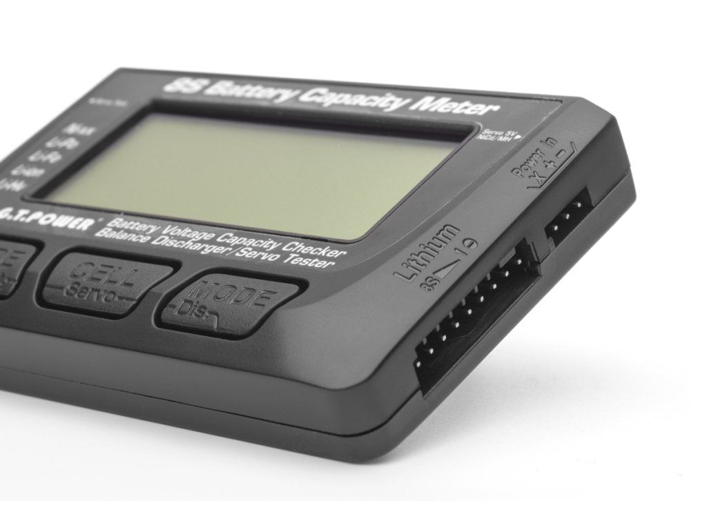 Tester LiPo akumulátorů 1-8S je multifunkční měřící přístroj umožňující testování stavu akumulátorových sad většiny hlavních modelářských typů: Li-Po, Li-ion, LiFe, LiHV, NiCd a NiMH. Dále umožňuje vybíjení s balancováním a autonomní balancování lithiových sad pro vyrovnání napětí jednotlivých článků na s tejnou úroveň. V režimu servotesteru jej lze použít pro testování serv a elektronických regulátorů otáček.